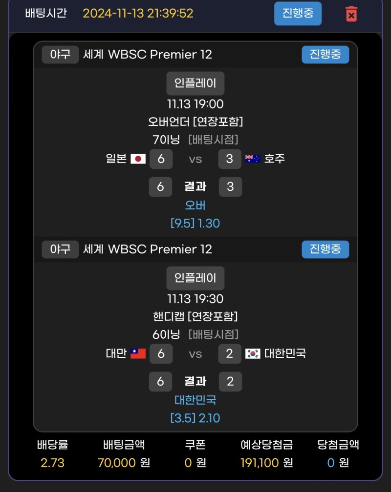 대만은 점수가 굳은 느낌이고 다득점 영향