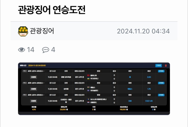 오늘자 관광징어픽 작성자 정보 딸배쪽지보내기 자기소개 닉네임으로 검색쪽지보내기 자기소개 닉네임으로 검색 작성 작성일 2024.11.20 08:53 컨텐츠 정보 361 조회 20 댓글 0 추천 목록 본문 막폴낙 ㄲㅂㅋㅋ 0 추천 관련자료 이전 1ㄷ1무 ㅋㅋ 한국승간 애국자들 사망 작성일 2024.11.20 08:57 다음 굿모닝 작성일 2024.11.20 08:23 댓글 20 먼짝귀1111님의 댓글 먼짝귀1111쪽지보내기 자기소개 닉네임으로 검색쪽지보내기 자기소개 닉네임으로 검색 작성일 2024.11.20 08:54 후덜덜 후덜덜 딸배님의 댓글의 댓글 딸배쪽지보내기 자기소개 닉네임으로 검색쪽지보내기 자기소개 닉네임으로 검색 작성일 2024.11.20 08:56 대단하시긴합니다 대단하시긴합니다 기커조님의 댓글 기커조쪽지보내기 자기소개 닉네임으로 검색쪽지보내기 자기소개 닉네임으로 검색 작성일 2024.11.20 08:55 까비요 까비요 딸배님의 댓글의 댓글 딸배쪽지보내기 자기소개 닉네임으로 검색쪽지보내기 자기소개 닉네임으로 검색 작성일 2024.11.20 08:56 아깝긴했음ㅋㅋ 아깝긴했음ㅋㅋ 켄트퍼플님의 댓글 켄트퍼플쪽지보내기 자기소개 닉네임으로 검색쪽지보내기 자기소개 닉네임으로 검색 작성일 2024.11.20 09:07 먹었는데 저거 먹었는데 저거 쫄병님의 댓글의 댓글 쫄병쪽지보내기 자기소개 닉네임으로 검색쪽지보내기 자기소개 닉네임으로 검색 작성일 2024.11.20 09:09 낙 낙 켄트퍼플님의 댓글의 댓글 켄트퍼플쪽지보내기 자기소개 닉네임으로 검색쪽지보내기 자기소개 닉네임으로 검색 작성일 2024.11.20 09:10 아 내가 잘못봤구나 아 내가 잘못봤구나 딸배님의 댓글의 댓글 딸배쪽지보내기 자기소개 닉네임으로 검색쪽지보내기 자기소개 닉네임으로 검색 작성일 2024.11.21 00:37 낙임ㅋㅋ 좀 아쉽긴해 낙임ㅋㅋ 좀 아쉽긴해 달먹님의 댓글 달먹쪽지보내기 자기소개 닉네임으로 검색쪽지보내기 자기소개 닉네임으로 검색 작성일 2024.11.20 09:30 네덜란드 풍차돌리기에 당했네 ㅋㅋ 네덜란드 풍차돌리기에 당했네 ㅋㅋ 딸배님의 댓글의 댓글 딸배쪽지보내기 자기소개 닉네임으로 검색쪽지보내기 자기소개 닉네임으로 검색 작성일 2024.11.21 00:38 ㄹㅇ 억까입니다 ㄹㅇ 억까입니다 두두님의 댓글 두두쪽지보내기 자기소개 닉네임으로 검색쪽지보내기 자기소개 닉네임으로 검색 작성일 2024.11.20 09:38 징어했네 ㅜ 징어했네 ㅜ 딸배님의 댓글의 댓글 딸배쪽지보내기 자기소개 닉네임으로 검색쪽지보내기 자기소개 닉네임으로 검색 작성일 2024.11.21 00:38 ㅋㅋㅋ 두두 흑화 ㅋㅋㅋ 두두 흑화 하얀구름님의 댓글 하얀구름쪽지보내기 자기소개 닉네임으로 검색쪽지보내기 자기소개 닉네임으로 검색 작성일 2024.11.20 09:47 까비 까비 딸배님의 댓글의 댓글 딸배쪽지보내기 자기소개 닉네임으로 검색쪽지보내기 자기소개 닉네임으로 검색 작성일 2024.11.21 00:38 아깝긴하죵 아깝긴하죵 인생은도박이다님의 댓글 인생은도박이다쪽지보내기 자기소개 닉네임으로 검색쪽지보내기 자기소개 닉네임으로 검색 작성일 2024.11.20 09:50 이걸 못 봤네 이걸 못 봤네 딸배님의 댓글의 댓글 딸배쪽지보내기 자기소개 닉네임으로 검색쪽지보내기 자기소개 닉네임으로 검색 작성일 2024.11.21 00:38 못본게 잘한거!! 못본게 잘한거!! 근본으로님의 댓글 근본으로쪽지보내기 자기소개 닉네임으로 검색쪽지보내기 자기소개 닉네임으로 검색 작성일 2024.11.20 14:10 까비 까비 딸배님의 댓글의 댓글 딸배쪽지보내기 자기소개 닉네임으로 검색쪽지보내기 자기소개 닉네임으로 검색 작성일 2024.11.21 00:38 까비용 ㅎㅎ 까비용 ㅎㅎ 리을님의 댓글 리을쪽지보내기 자기소개 닉네임으로 검색쪽지보내기 자기소개 닉네임으로 검색 작성일 2024.11.20 17:21 아쉽네여 ^^ 아쉽네여 ^^ 딸배님의 댓글의 댓글 딸배쪽지보내기 자기소개 닉네임으로 검색쪽지보내기 자기소개 닉네임으로 검색 작성일 2024.11.21 00:39 아쉽습니당 ㅠ 아쉽습니당 ㅠ 로그인한 회원만 댓글 등록이 가능합니다. 목록