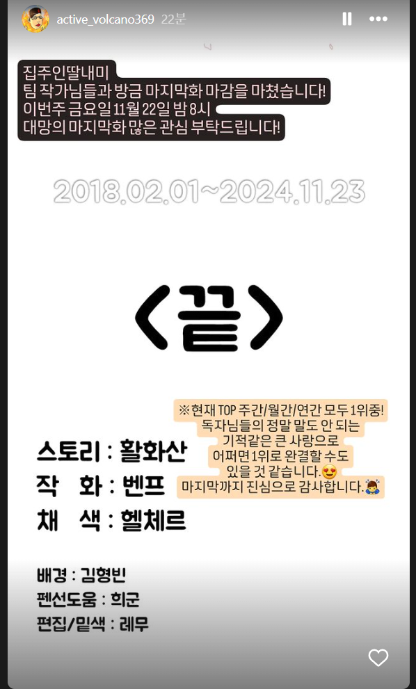 마당발님의 댓글 마당발쪽지보내기 자기소개 닉네임으로 검색쪽지보내기 자기소개 닉네임으로 검색 작성일 2024.11.20 23:40 5년이상 본것같은데 드디어 끝나노 5년이상 본것같은데 드디어 끝나노