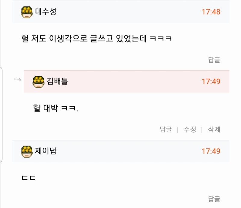 행붕아 제이덥님이 돈 주신다는데. 작성자 정보 김배틀쪽지보내기 자기소개 닉네임으로 검색쪽지보내기 자기소개 닉네임으로 검색 작성 작성일 2024.11.21 17:51 컨텐츠 정보 243 조회 1 댓글 0 추천 목록 본문 너 이거 신고하래. 농이에요. 0 추천 관련자료 이전 작대 걸릴 확률 몇퍼임? 작성일 2024.11.21 17:52 다음 행토 몇포냐 작성일 2024.11.21 17:50 댓글 1 근본으로님의 댓글 근본으로쪽지보내기 자기소개 닉네임으로 검색쪽지보내기 자기소개 닉네임으로 검색 작성일 2024.11.21 23:47 덜덜 덜덜 로그인한 회원만 댓글 등록이 가능합니다. 목록