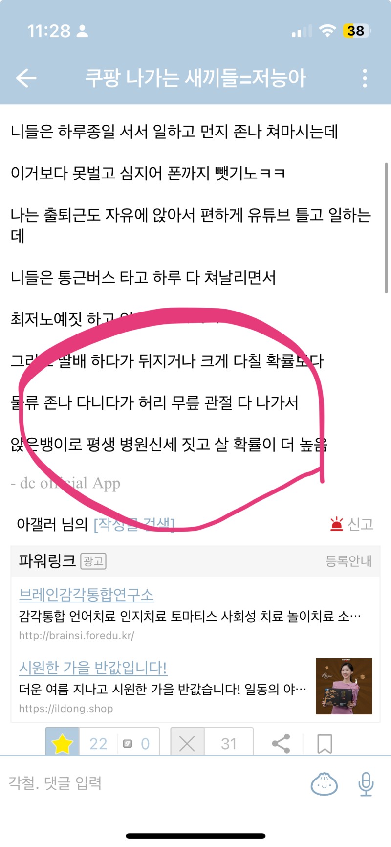 일단 내일 쿠팡 나가는데 작성자 정보 딸배쪽지보내기 자기소개 닉네임으로 검색쪽지보내기 자기소개 닉네임으로 검색 작성 작성일 2024.11.23 11:28 컨텐츠 정보 150 조회 4 댓글 0 추천 목록 본문 이거 맞말같음 아니 한번 가봐도 ㅈㄴ 몇일동안 아픈데 이걸 자주 가면 진짜 몸 다 상핳듷 0 추천 관련자료 이전 좋은 아침입니다 작성일 2024.11.23 11:29 다음 글노보다 댓노가 낫다 작성일 2024.11.23 11:18 댓글 4 리을님의 댓글 리을쪽지보내기 자기소개 닉네임으로 검색쪽지보내기 자기소개 닉네임으로 검색 작성일 2024.11.23 13:12 꾸준하게 절대 못나감 꾸준하게 절대 못나감 딸배님의 댓글의 댓글 딸배쪽지보내기 자기소개 닉네임으로 검색쪽지보내기 자기소개 닉네임으로 검색 작성일 2024.11.24 10:53 리얼 리얼 근본으로님의 댓글 근본으로쪽지보내기 자기소개 닉네임으로 검색쪽지보내기 자기소개 닉네임으로 검색 작성일 2024.11.23 15:56 어렵지 어렵지 딸배님의 댓글의 댓글 딸배쪽지보내기 자기소개 닉네임으로 검색쪽지보내기 자기소개 닉네임으로 검색 작성일 2024.11.24 10:53 그렇죠 ㅎㅎ 그렇죠 ㅎㅎ 로그인한 회원만 댓글 등록이 가능합니다. 목록