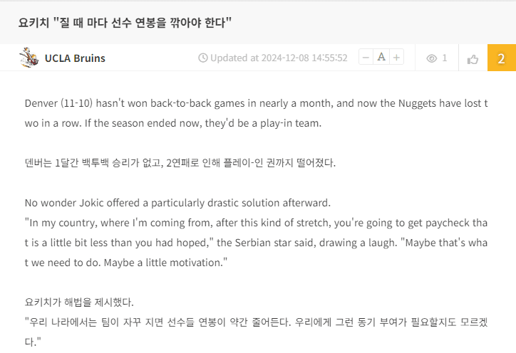 듀란님의 댓글 듀란쪽지보내기 자기소개 닉네임으로 검색쪽지보내기 자기소개 닉네임으로 검색 작성일 2024.12.09 11:04 요키치 50몇 득점했다고 너무.. 요키치 50몇 득점했다고 너무..