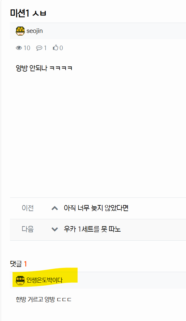 인생은도박이다님의 댓글 인생은도박이다쪽지보내기 자기소개 닉네임으로 검색쪽지보내기 자기소개 닉네임으로 검색 작성일 2024.12.17 22:29 어허.... 게시글이 달리면 그저 댓글을 달 뿐이다. 어허.... 게시글이 달리면 그저 댓글을 달 뿐이다.