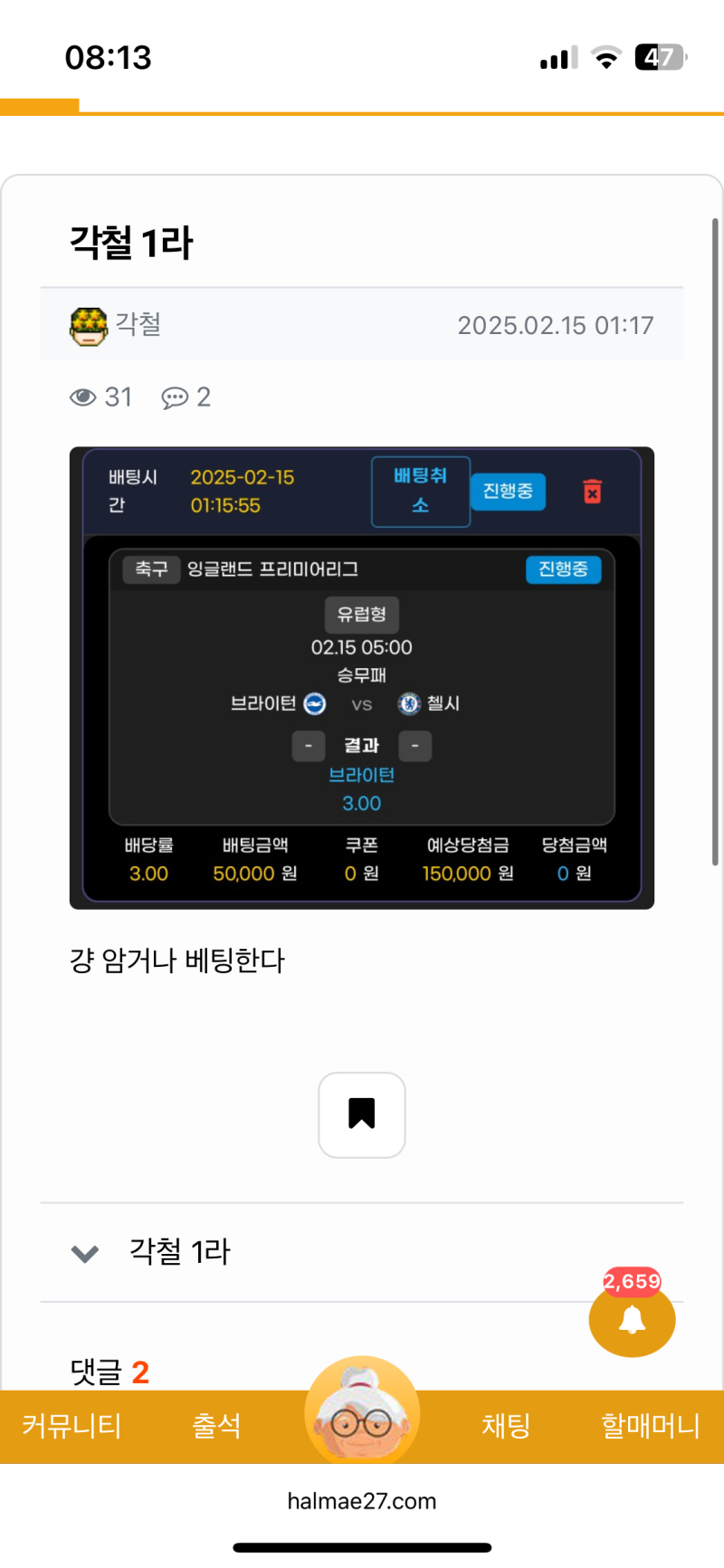 리무진님 토드컵 배팅 안하시고 남꺼 캡쳐하시나요? 작성자 정보 각철쪽지보내기 자기소개 닉네임으로 검색쪽지보내기 자기소개 닉네임으로 검색 작성 작성일 2025.02.15 08:16 컨텐츠 정보 84 조회 10 댓글 0 추천 목록 본문 아니라면 배팅 시간 보여주세요 이게 뭔 0 추천 관련자료 이전 굿머닝 작성일 2025.02.15 08:44 다음 브라이튼 승ㅅㅅ 1라 개1쉽넝 작성일 2025.02.15 07:57 댓글 10 호르직스님의 댓글 호르직스쪽지보내기 자기소개 닉네임으로 검색쪽지보내기 자기소개 닉네임으로 검색 작성일 2025.02.15 08:20 ㅋㅋㅋ ㅋㅋㅋ 스테판커쇼님의 댓글 스테판커쇼쪽지보내기 자기소개 닉네임으로 검색쪽지보내기 자기소개 닉네임으로 검색 작성일 2025.02.15 08:37 후덜덜 후덜덜 두두님의 댓글 두두쪽지보내기 자기소개 닉네임으로 검색쪽지보내기 자기소개 닉네임으로 검색 작성일 2025.02.15 09:13 캡쳐 캡쳐 로로랜드님의 댓글 로로랜드쪽지보내기 자기소개 닉네임으로 검색쪽지보내기 자기소개 닉네임으로 검색 작성일 2025.02.15 09:35 후덜덜덜 후덜덜덜 인생은도박이다님의 댓글 인생은도박이다쪽지보내기 자기소개 닉네임으로 검색쪽지보내기 자기소개 닉네임으로 검색 작성일 2025.02.15 10:01 후덜덜 후덜덜 달먹님의 댓글 달먹쪽지보내기 자기소개 닉네임으로 검색쪽지보내기 자기소개 닉네임으로 검색 작성일 2025.02.15 10:41 누구의 부캐일까나 누구의 부캐일까나{emo:onion-052.gif:50} 먼짝귀1111님의 댓글 먼짝귀1111쪽지보내기 자기소개 닉네임으로 검색쪽지보내기 자기소개 닉네임으로 검색 작성일 2025.02.15 13:46 후덜덜 후덜덜 기커조님의 댓글 기커조쪽지보내기 자기소개 닉네임으로 검색쪽지보내기 자기소개 닉네임으로 검색 작성일 2025.02.15 14:12 뭐지 ㄷㄷ 뭐지 ㄷㄷ 토지노프2님의 댓글 토지노프2쪽지보내기 자기소개 닉네임으로 검색쪽지보내기 자기소개 닉네임으로 검색 작성일 2025.02.15 17:08 헏ㄷ 헏ㄷ 발암기억님의 댓글 발암기억쪽지보내기 자기소개 닉네임으로 검색쪽지보내기 자기소개 닉네임으로 검색 작성일 2025.02.15 17:58 헐... 헐... 로그인한 회원만 댓글 등록이 가능합니다. 목록