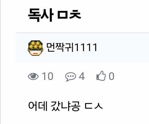 인생은도박이다님의 댓글 인생은도박이다쪽지보내기 자기소개 닉네임으로 검색쪽지보내기 자기소개 닉네임으로 검색 작성일 2025.03.18 14:50 독사가 동쪽으로 간 까닭은? 독사가 동쪽으로 간 까닭은?