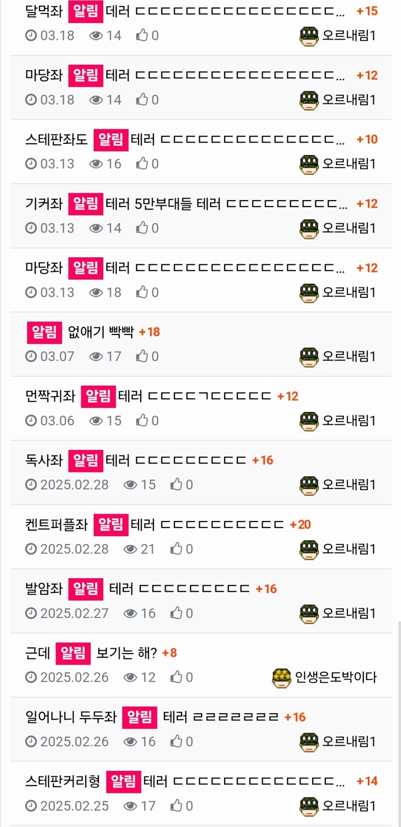 요즘 알림성애자인 사람.jpg (소아성애자 아님) 작성자 정보 독사쪽지보내기 자기소개 닉네임으로 검색쪽지보내기 자기소개 닉네임으로 검색 작성 작성일 2025.03.20 16:37 컨텐츠 정보 52 조회 9 댓글 0 추천 목록 본문 어데 갔냐공 ㄷㅅ 0 추천 관련자료 이전 요즘 사라진 사람.jpg 작성일 2025.03.20 16:44 다음 요즘 다시 활동하려다 사라진 부캐.jpg 작성일 2025.03.20 16:35 댓글 9 오르내림1님의 댓글 오르내림1쪽지보내기 자기소개 닉네임으로 검색쪽지보내기 자기소개 닉네임으로 검색 작성일 2025.03.20 16:39 ㅋㅋㅋㅋ 정성이네 ㅋㅋㅋㅋ 정성이네 인생은도박이다님의 댓글의 댓글 인생은도박이다쪽지보내기 자기소개 닉네임으로 검색쪽지보내기 자기소개 닉네임으로 검색 작성일 2025.03.20 16:48 정성 평가 100점 정성 평가 100점 오르내림1님의 댓글의 댓글 오르내림1쪽지보내기 자기소개 닉네임으로 검색쪽지보내기 자기소개 닉네임으로 검색 작성일 2025.03.20 16:53 인정 박고 개추 인정 박고 개추 먼짝귀1111님의 댓글 먼짝귀1111쪽지보내기 자기소개 닉네임으로 검색쪽지보내기 자기소개 닉네임으로 검색 작성일 2025.03.20 16:48 테러ㅅㅅ 테러ㅅㅅ 오르내림1님의 댓글의 댓글 오르내림1쪽지보내기 자기소개 닉네임으로 검색쪽지보내기 자기소개 닉네임으로 검색 작성일 2025.03.20 16:54 테러라이브 테러라이브 기커조님의 댓글 기커조쪽지보내기 자기소개 닉네임으로 검색쪽지보내기 자기소개 닉네임으로 검색 작성일 2025.03.20 16:55 테러리스트 테러리스트 스테판커쇼님의 댓글 스테판커쇼쪽지보내기 자기소개 닉네임으로 검색쪽지보내기 자기소개 닉네임으로 검색 작성일 2025.03.20 18:25 ㅁㅊ ㅁㅊ 두두님의 댓글 두두쪽지보내기 자기소개 닉네임으로 검색쪽지보내기 자기소개 닉네임으로 검색 작성일 2025.03.20 20:09 알림 알림 달먹님의 댓글 달먹쪽지보내기 자기소개 닉네임으로 검색쪽지보내기 자기소개 닉네임으로 검색 작성일 2025.03.21 13:24 왜그렇게 신경쓰는지 모르겠네 ㄹㅇ 왜그렇게 신경쓰는지 모르겠네 ㄹㅇ 로그인한 회원만 댓글 등록이 가능합니다. 목록