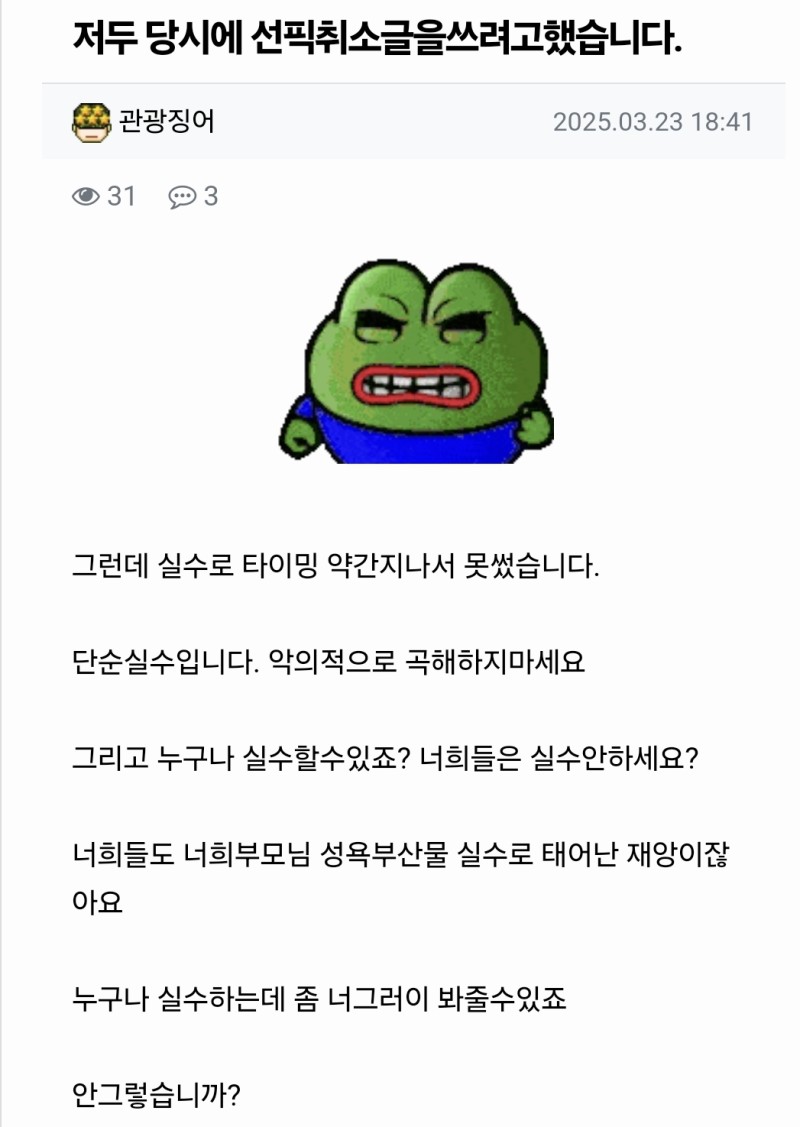 너희들도 너희부모님 성욕부산물 실수로 태어난 재앙이잖아요