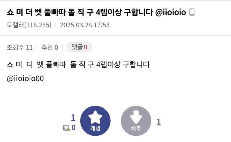 쇼미 풀빠따 돌직구 4렙이상 구합니다 작성자 정보 독사쪽지보내기 자기소개 닉네임으로 검색쪽지보내기 자기소개 닉네임으로 검색 작성 작성일 2025.03.28 23:09 컨텐츠 정보 77 조회 7 댓글 0 추천 목록 본문 내할매요 0 추천 관련자료 이전 토드컵 1라 통과자 얼마나 될까? 작성일 2025.03.28 23:13 다음 넘 바쁘네요 요즘 ㄷㄷ 작성일 2025.03.28 23:07 댓글 7 로로랜드님의 댓글 로로랜드쪽지보내기 자기소개 닉네임으로 검색쪽지보내기 자기소개 닉네임으로 검색 작성일 2025.03.28 23:13 ㅋㅋㅋㅋㅋㅋㅋㅋㅋ ㅋㅋㅋㅋㅋㅋㅋㅋㅋ 오르내림1님의 댓글 오르내림1쪽지보내기 자기소개 닉네임으로 검색쪽지보내기 자기소개 닉네임으로 검색 작성일 2025.03.28 23:17 ㅋㅋㅋ ㅋㅋㅋ 마당발님의 댓글 마당발쪽지보내기 자기소개 닉네임으로 검색쪽지보내기 자기소개 닉네임으로 검색 작성일 2025.03.29 02:22 이게머고 이게머고 스테판커쇼님의 댓글 스테판커쇼쪽지보내기 자기소개 닉네임으로 검색쪽지보내기 자기소개 닉네임으로 검색 작성일 2025.03.29 07:53 헉 헉 두두님의 댓글 두두쪽지보내기 자기소개 닉네임으로 검색쪽지보내기 자기소개 닉네임으로 검색 작성일 2025.03.29 08:12 워메 워메 기커조님의 댓글 기커조쪽지보내기 자기소개 닉네임으로 검색쪽지보내기 자기소개 닉네임으로 검색 작성일 2025.03.29 13:26 뭐지 ㄷㄷ 뭐지 ㄷㄷ 달먹님의 댓글 달먹쪽지보내기 자기소개 닉네임으로 검색쪽지보내기 자기소개 닉네임으로 검색 작성일 2025.03.29 15:09 쫄 ㅋㅋㅋ 쫄 ㅋㅋㅋ 로그인한 회원만 댓글 등록이 가능합니다. 목록