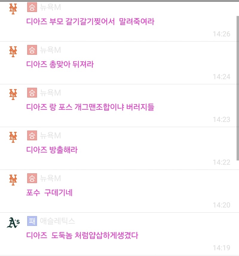 인생은도박이다님의 댓글 인생은도박이다쪽지보내기 자기소개 닉네임으로 검색쪽지보내기 자기소개 닉네임으로 검색 작성일 2025.04.12 16:06 또 블론했냐? 디아즈 씁 자 석 퇴이커 마냥 퇴물 됐구나 또 블론했냐? 디아즈 씁 자 석 퇴이커 마냥 퇴물 됐구나