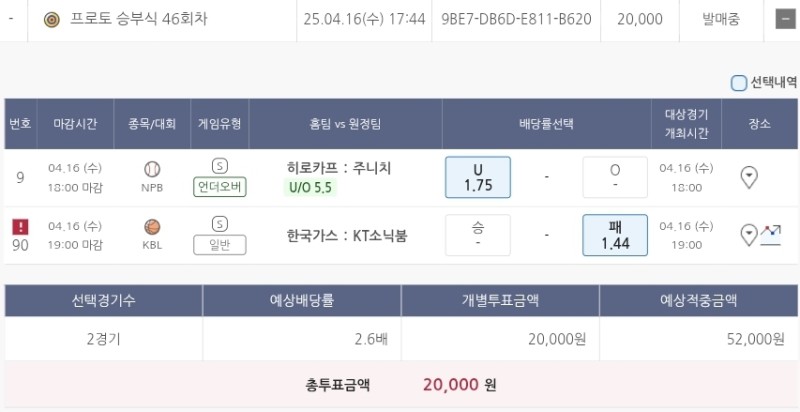 4/16 히로시마 주니치 5.5 언더 ⭕️