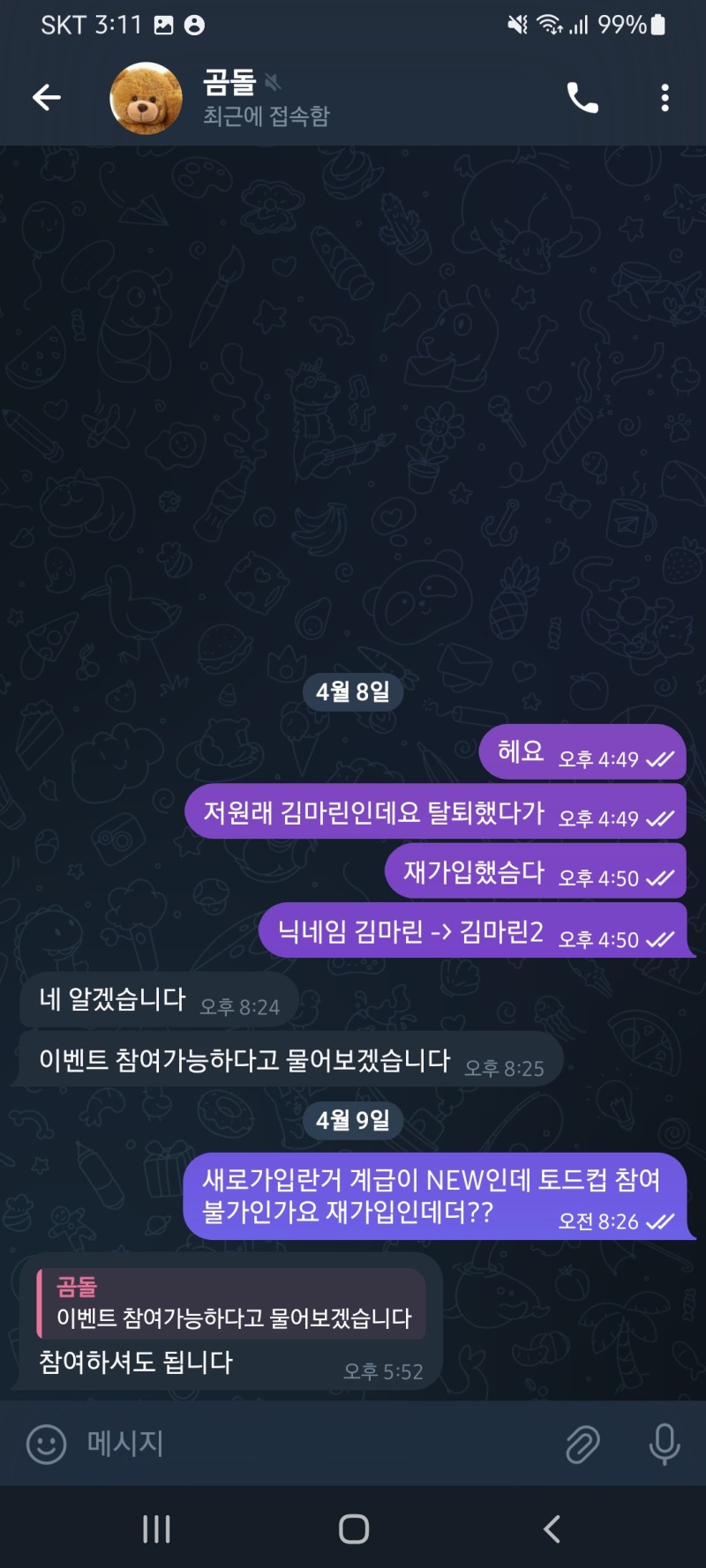 쫄병님의 댓글 쫄병쪽지보내기 자기소개 닉네임으로 검색쪽지보내기 자기소개 닉네임으로 검색 작성일 2025.04.27 03:13 오 넵 이럼가능이죵 말을안해주셔서리 ㅋㅋ 오 넵 이럼가능이죵 말을안해주셔서리 ㅋㅋ