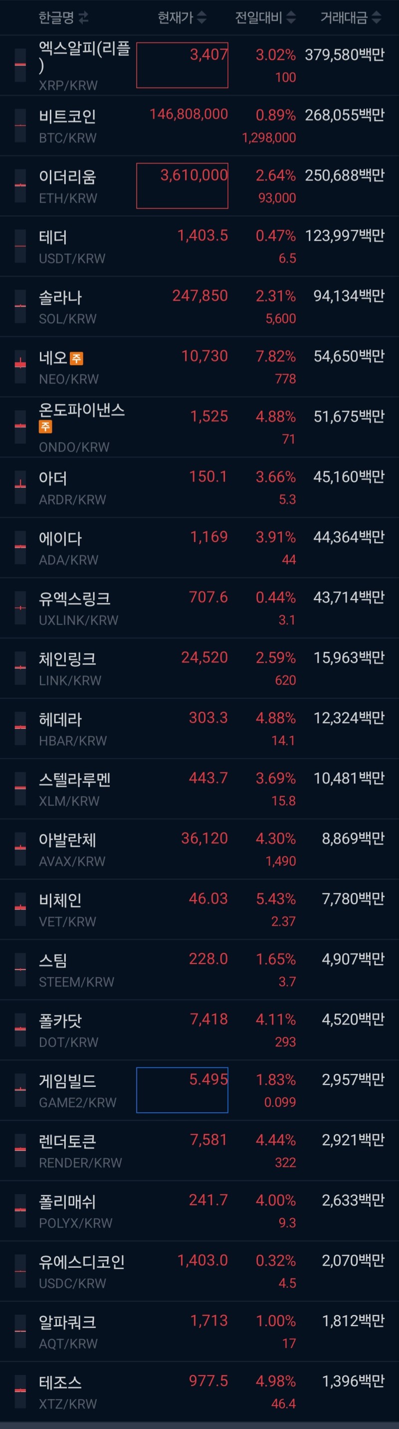 2.18시 기준 빗썸 코인 수익률 1명 -15~+15