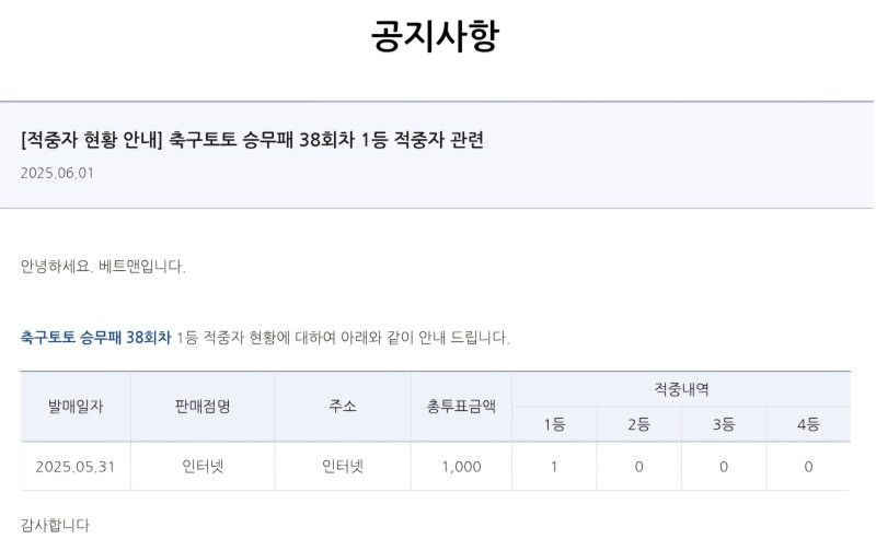 와 ㅆ1발 승무패 세전35억 세후23억8200만 독식