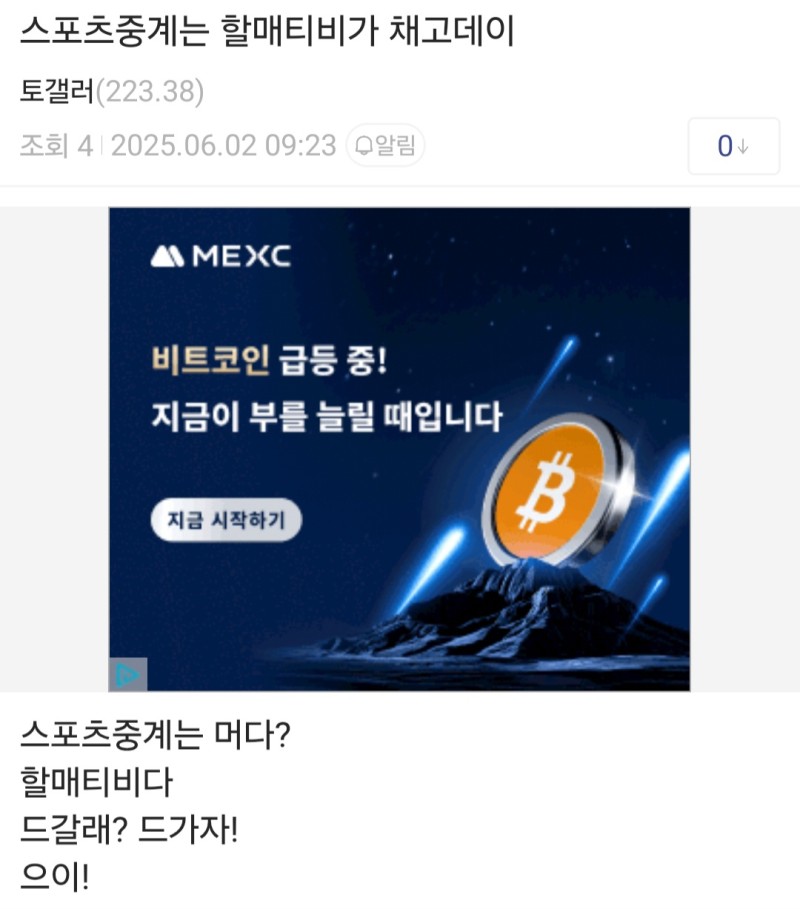 홍보왕 인생은 도박이다 작성자 정보 인생은도박이다쪽지보내기 자기소개 닉네임으로 검색쪽지보내기 자기소개 닉네임으로 검색 작성 작성일 2025.06.02 09:26 컨텐츠 정보 79 조회 6 댓글 0 추천 목록 본문 완료 0 추천 관련자료 이전 아침부터 왜 둘리 노래가 나오노 작성일 2025.06.02 09:31 다음 ㅎㅇ 작성일 2025.06.02 09:26 댓글 6 두두님의 댓글 두두쪽지보내기 자기소개 닉네임으로 검색쪽지보내기 자기소개 닉네임으로 검색 작성일 2025.06.02 21:48 슥통 슥통 먼짝귀1111님의 댓글 먼짝귀1111쪽지보내기 자기소개 닉네임으로 검색쪽지보내기 자기소개 닉네임으로 검색 작성일 2025.06.02 22:35 굿ㅅ 굿ㅅ 발암기억님의 댓글 발암기억쪽지보내기 자기소개 닉네임으로 검색쪽지보내기 자기소개 닉네임으로 검색 작성일 2025.06.02 23:14 굿ㅅ 굿ㅅ 마당발님의 댓글 마당발쪽지보내기 자기소개 닉네임으로 검색쪽지보내기 자기소개 닉네임으로 검색 작성일 2025.06.03 03:47 굿 굿 켄트퍼플님의 댓글 켄트퍼플쪽지보내기 자기소개 닉네임으로 검색쪽지보내기 자기소개 닉네임으로 검색 작성일 2025.06.03 08:57 굿 굿 기커조님의 댓글 기커조쪽지보내기 자기소개 닉네임으로 검색쪽지보내기 자기소개 닉네임으로 검색 작성일 2025.06.03 09:18 샤샷 샤샷 로그인한 회원만 댓글 등록이 가능합니다. 목록