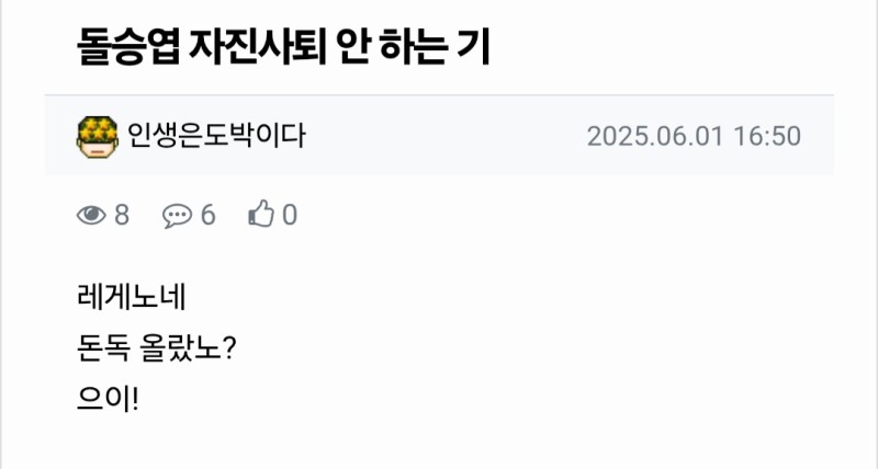 내가 돌승엽 경질시켰다 작성자 정보 인생은도박이다쪽지보내기 자기소개 닉네임으로 검색쪽지보내기 자기소개 닉네임으로 검색 작성 작성일 2025.06.02 19:59 컨텐츠 정보 80 조회 8 댓글 0 추천 목록 본문 형의 입김 24시간도 안 지나 전격 자진사퇴 조트 영향력 밨나? 국민 4번 타자도 날리삔다 으이! 0 추천 관련자료 이전 이틀 뒤부터는 작성일 2025.06.02 20:02 다음 홍보왕 매일우유 작성일 2025.06.02 19:57 댓글 8 리을님의 댓글 리을쪽지보내기 자기소개 닉네임으로 검색쪽지보내기 자기소개 닉네임으로 검색 작성일 2025.06.02 21:12 큰일했다 ㄷㄷ 큰일했다 ㄷㄷ 두두님의 댓글 두두쪽지보내기 자기소개 닉네임으로 검색쪽지보내기 자기소개 닉네임으로 검색 작성일 2025.06.03 09:09 경질 경질 기커조님의 댓글 기커조쪽지보내기 자기소개 닉네임으로 검색쪽지보내기 자기소개 닉네임으로 검색 작성일 2025.06.03 12:32 후덜덜 후덜덜 스테판커쇼님의 댓글 스테판커쇼쪽지보내기 자기소개 닉네임으로 검색쪽지보내기 자기소개 닉네임으로 검색 작성일 2025.06.03 13:21 후덜덜 후덜덜 켄트퍼플님의 댓글 켄트퍼플쪽지보내기 자기소개 닉네임으로 검색쪽지보내기 자기소개 닉네임으로 검색 작성일 2025.06.03 17:25 헉 헉 먼짝귀1111님의 댓글 먼짝귀1111쪽지보내기 자기소개 닉네임으로 검색쪽지보내기 자기소개 닉네임으로 검색 작성일 2025.06.03 18:19 후덜덜 후덜덜 마당발님의 댓글 마당발쪽지보내기 자기소개 닉네임으로 검색쪽지보내기 자기소개 닉네임으로 검색 작성일 2025.06.03 18:42 헐 헐 달먹님의 댓글 달먹쪽지보내기 자기소개 닉네임으로 검색쪽지보내기 자기소개 닉네임으로 검색 작성일 2025.06.03 19:12 좀치노 좀치노 로그인한 회원만 댓글 등록이 가능합니다. 목록