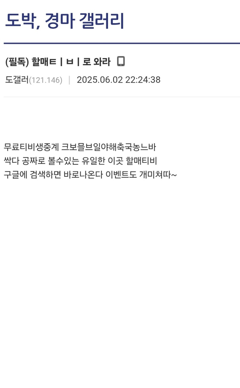 홍보왕 발암기억 작성자 정보 발암기억쪽지보내기 자기소개 닉네임으로 검색쪽지보내기 자기소개 닉네임으로 검색 작성 작성일 2025.06.02 22:34 컨텐츠 정보 88 조회 8 댓글 0 추천 목록 관리 글검색 본문 라스는 10초만에 댓글짤려버리네ㄷ 0 추천 관련자료 이전 오늘 경기가 한녀축구뿐이엇어서 작성일 2025.06.02 22:35 다음 한녀축구하고있네 ㅋㅋㅋ 작성일 2025.06.02 19:31 댓글 8 김유비님의 댓글 김유비쪽지보내기 자기소개 닉네임으로 검색쪽지보내기 자기소개 닉네임으로 검색 작성일 2025.06.02 23:30 굿굿 굿굿 두두님의 댓글 두두쪽지보내기 자기소개 닉네임으로 검색쪽지보내기 자기소개 닉네임으로 검색 작성일 2025.06.03 09:26 오킹 오킹 기커조님의 댓글 기커조쪽지보내기 자기소개 닉네임으로 검색쪽지보내기 자기소개 닉네임으로 검색 작성일 2025.06.03 12:55 홍보 ㅅ 홍보 ㅅ 스테판커쇼님의 댓글 스테판커쇼쪽지보내기 자기소개 닉네임으로 검색쪽지보내기 자기소개 닉네임으로 검색 작성일 2025.06.03 14:20 홍보 홍보 켄트퍼플님의 댓글 켄트퍼플쪽지보내기 자기소개 닉네임으로 검색쪽지보내기 자기소개 닉네임으로 검색 작성일 2025.06.03 17:34 좋아요 좋아요 먼짝귀1111님의 댓글 먼짝귀1111쪽지보내기 자기소개 닉네임으로 검색쪽지보내기 자기소개 닉네임으로 검색 작성일 2025.06.03 18:36 굿ㅅ 굿ㅅ 마당발님의 댓글 마당발쪽지보내기 자기소개 닉네임으로 검색쪽지보내기 자기소개 닉네임으로 검색 작성일 2025.06.03 19:13 굿 굿 달먹님의 댓글 달먹쪽지보내기 자기소개 닉네임으로 검색쪽지보내기 자기소개 닉네임으로 검색 작성일 2025.06.03 21:01 홍왕 ㅅㅅ 홍왕 ㅅㅅ 로그인한 회원만 댓글 등록이 가능합니다. 목록 관리 글검색
