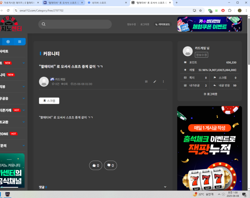 홍보왕 카드게임 6/8 작성자 정보 카드게임쪽지보내기 자기소개 닉네임으로 검색쪽지보내기 자기소개 닉네임으로 검색 작성 작성일 2025.06.08 01:01 컨텐츠 정보 49 조회 8 댓글 0 추천 목록 관리 글검색 본문 숙제 완 0 추천 관련자료 이전 홍보왕 카드게임 6/9 작성일 2025.06.09 03:09 다음 홍보왕 카드게임 6/7 작성일 2025.06.07 00:05 댓글 8 두두님의 댓글 두두쪽지보내기 자기소개 닉네임으로 검색쪽지보내기 자기소개 닉네임으로 검색 작성일 2025.06.08 10:50 완료 완료 기커조님의 댓글 기커조쪽지보내기 자기소개 닉네임으로 검색쪽지보내기 자기소개 닉네임으로 검색 작성일 2025.06.08 11:01 홍보 ㅅ 홍보 ㅅ 켄트퍼플님의 댓글 켄트퍼플쪽지보내기 자기소개 닉네임으로 검색쪽지보내기 자기소개 닉네임으로 검색 작성일 2025.06.08 12:58 굿굿 굿굿 마당발님의 댓글 마당발쪽지보내기 자기소개 닉네임으로 검색쪽지보내기 자기소개 닉네임으로 검색 작성일 2025.06.08 14:33 굿 굿 토지노프2님의 댓글 토지노프2쪽지보내기 자기소개 닉네임으로 검색쪽지보내기 자기소개 닉네임으로 검색 작성일 2025.06.08 16:28 굳ㅅ 굳ㅅ 발암기억님의 댓글 발암기억쪽지보내기 자기소개 닉네임으로 검색쪽지보내기 자기소개 닉네임으로 검색 작성일 2025.06.08 19:02 홍보ㅅ 홍보ㅅ 먼짝귀1111님의 댓글 먼짝귀1111쪽지보내기 자기소개 닉네임으로 검색쪽지보내기 자기소개 닉네임으로 검색 작성일 2025.06.08 22:28 굿ㅅ 굿ㅅ 달먹님의 댓글 달먹쪽지보내기 자기소개 닉네임으로 검색쪽지보내기 자기소개 닉네임으로 검색 작성일 2025.06.09 09:11 빠른숙제 ㅅㅅ 빠른숙제 ㅅㅅ 로그인한 회원만 댓글 등록이 가능합니다. 목록 관리 글검색
