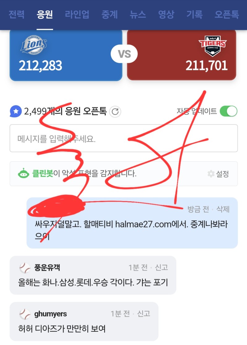 홍보왕 독사 작성자 정보 독사쪽지보내기 자기소개 닉네임으로 검색쪽지보내기 자기소개 닉네임으로 검색 작성 작성일 2025.06.09 23:57 컨텐츠 정보 58 조회 4 댓글 0 추천 목록 관리 글검색 본문 ㅁㅊ 0 추천 관련자료 이전 다덜 정신 차려래이 작성일 2025.06.09 23:59 다음 ㅁㅊ 작성일 2025.06.09 23:52 댓글 4 스테판커쇼님의 댓글 스테판커쇼쪽지보내기 자기소개 닉네임으로 검색쪽지보내기 자기소개 닉네임으로 검색 작성일 2025.06.10 07:17 화이팅 화이팅 켄트퍼플님의 댓글 켄트퍼플쪽지보내기 자기소개 닉네임으로 검색쪽지보내기 자기소개 닉네임으로 검색 작성일 2025.06.10 19:00 좋아요 좋아요 마당발님의 댓글 마당발쪽지보내기 자기소개 닉네임으로 검색쪽지보내기 자기소개 닉네임으로 검색 작성일 2025.06.10 21:08 굿 굿 기커조님의 댓글 기커조쪽지보내기 자기소개 닉네임으로 검색쪽지보내기 자기소개 닉네임으로 검색 작성일 2025.06.10 21:59 홍보 ㅅ 홍보 ㅅ 로그인한 회원만 댓글 등록이 가능합니다. 목록 관리 글검색