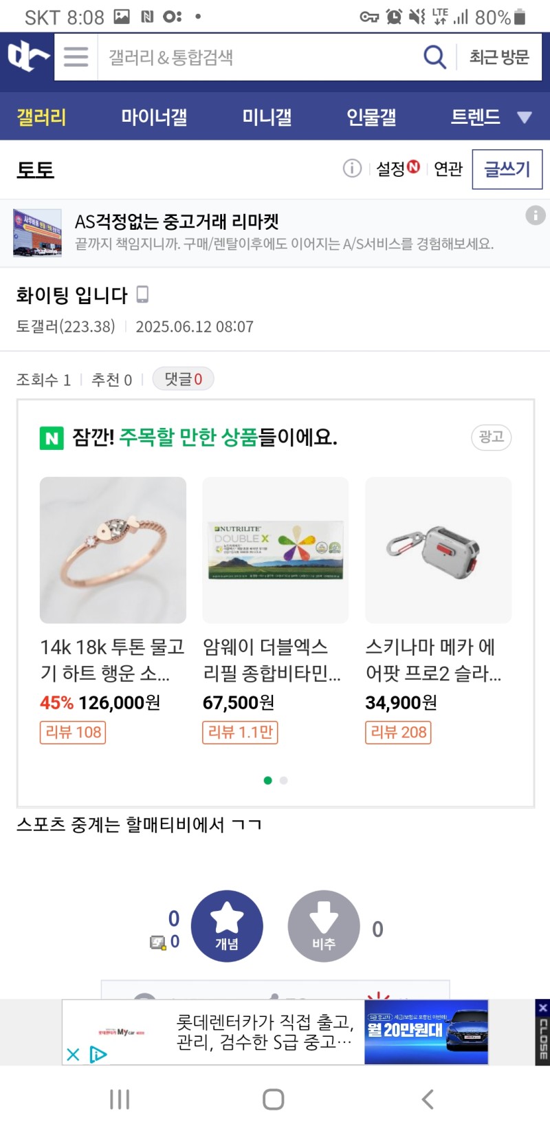 홍보왕 먼짝귀1111 작성자 정보 먼짝귀1111쪽지보내기 자기소개 닉네임으로 검색쪽지보내기 자기소개 닉네임으로 검색 작성 작성일 2025.06.12 08:10 컨텐츠 정보 78 조회 4 댓글 0 추천 목록 관리 글검색 본문 네이버 토갤 다음 0 추천 관련자료 이전 인브 작성일 2025.06.12 08:27 다음 행목화 작성일 2025.06.12 06:50 댓글 4 마당발님의 댓글 마당발쪽지보내기 자기소개 닉네임으로 검색쪽지보내기 자기소개 닉네임으로 검색 작성일 2025.06.12 13:42 굿 굿 기커조님의 댓글 기커조쪽지보내기 자기소개 닉네임으로 검색쪽지보내기 자기소개 닉네임으로 검색 작성일 2025.06.12 19:49 홍보 ㅅ 홍보 ㅅ 두두님의 댓글 두두쪽지보내기 자기소개 닉네임으로 검색쪽지보내기 자기소개 닉네임으로 검색 작성일 2025.06.12 21:36 홍먼 홍먼 참이슬님의 댓글 참이슬쪽지보내기 자기소개 닉네임으로 검색쪽지보내기 자기소개 닉네임으로 검색 작성일 2025.06.13 07:40 좋아요 좋아요 로그인한 회원만 댓글 등록이 가능합니다. 목록 관리 글검색