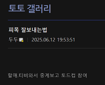 두두 홍보왕 작성자 정보 두두쪽지보내기 자기소개 닉네임으로 검색쪽지보내기 자기소개 닉네임으로 검색 작성 작성일 2025.06.12 19:56 컨텐츠 정보 81 조회 3 댓글 0 추천 목록 관리 글검색 본문 토갤 네스 0 추천 관련자료 이전 할티출근 작성일 2025.06.13 22:09 다음 학식충들 조만간 종강 작성일 2025.06.12 19:52 댓글 3 기커조님의 댓글 기커조쪽지보내기 자기소개 닉네임으로 검색쪽지보내기 자기소개 닉네임으로 검색 작성일 2025.06.12 22:34 홍보 ㅅ 홍보 ㅅ 마당발님의 댓글 마당발쪽지보내기 자기소개 닉네임으로 검색쪽지보내기 자기소개 닉네임으로 검색 작성일 2025.06.12 22:38 굿 굿 참이슬님의 댓글 참이슬쪽지보내기 자기소개 닉네임으로 검색쪽지보내기 자기소개 닉네임으로 검색 작성일 2025.06.13 08:21 굿 굿 로그인한 회원만 댓글 등록이 가능합니다. 목록 관리 글검색