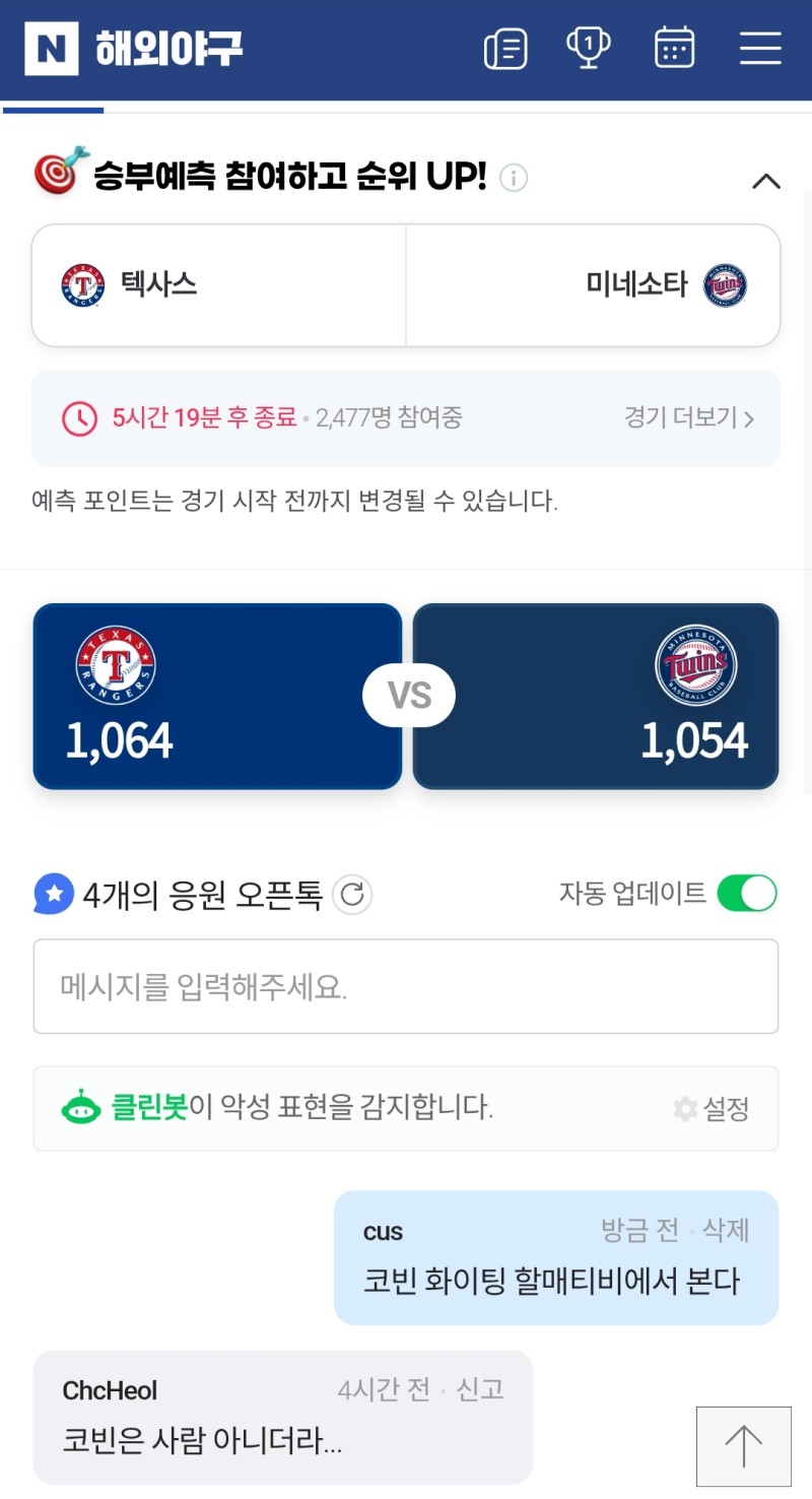 홍보왕 마당발 작성자 정보 마당발쪽지보내기 자기소개 닉네임으로 검색쪽지보내기 자기소개 닉네임으로 검색 작성 작성일 2025.06.12 20:53 컨텐츠 정보 78 조회 2 댓글 0 추천 목록 관리 글검색 본문 토갤라스네이버 0 추천 관련자료 이전 나도 토갤에 홍보하긴 하지만 작성일 2025.06.12 20:54 다음 샌프 어캐이겼노 ㅋㅋ 작성일 2025.06.12 12:48 댓글 2 기커조님의 댓글 기커조쪽지보내기 자기소개 닉네임으로 검색쪽지보내기 자기소개 닉네임으로 검색 작성일 2025.06.12 23:04 좋다 ㅅ 좋다 ㅅ 참이슬님의 댓글 참이슬쪽지보내기 자기소개 닉네임으로 검색쪽지보내기 자기소개 닉네임으로 검색 작성일 2025.06.13 08:29 좋아요 좋아요 로그인한 회원만 댓글 등록이 가능합니다. 목록 관리 글검색