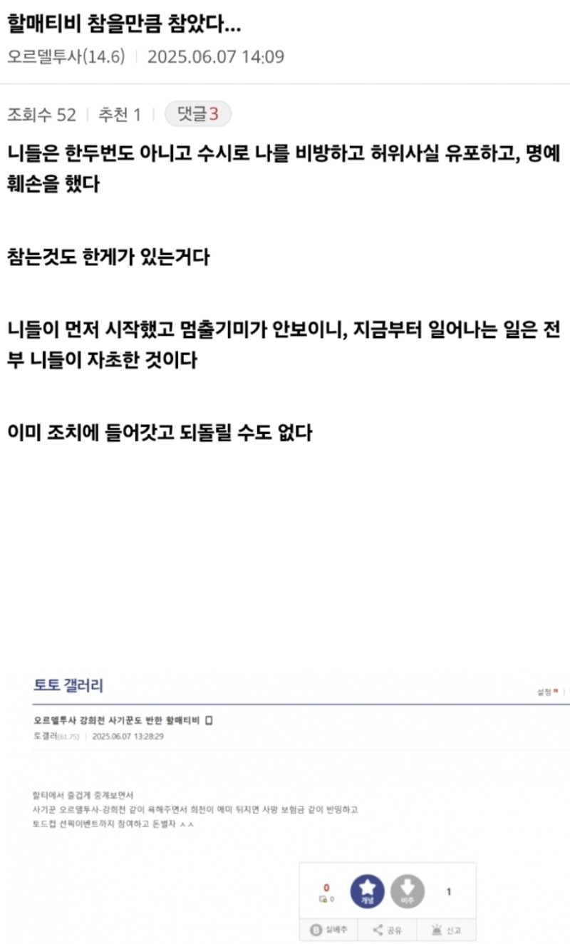 인생은도박이다님의 댓글 인생은도박이다쪽지보내기 자기소개 닉네임으로 검색쪽지보내기 자기소개 닉네임으로 검색 작성일 2025.06.16 14:35 강바닥 또넌 산기슭 강바닥 또넌 산기슭