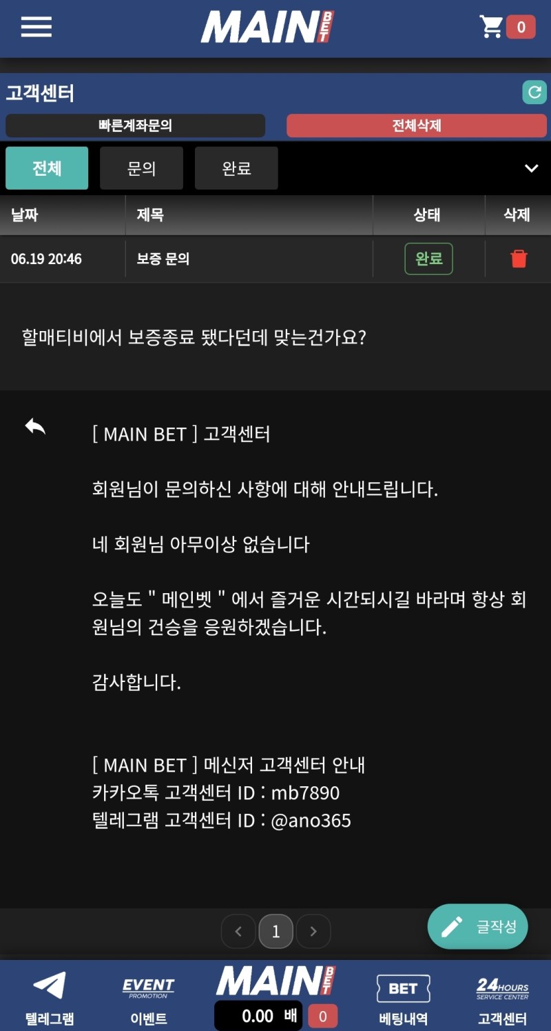 답답해서 메인벳에 물어봄 작성자 정보 켄트퍼플쪽지보내기 자기소개 닉네임으로 검색쪽지보내기 자기소개 닉네임으로 검색 작성 작성일 2025.06.19 20:47 컨텐츠 정보 96 조회 4 댓글 0 추천 목록 관리 글검색 본문 뭐가 맞는건데 ㅅㅂ 0 추천 관련자료 이전 메인벳 당분간 중지라는데 작성일 2025.06.19 20:55 다음 레드불 보증종료라고 전화까지 돌렸다며 작성일 2025.06.19 20:43 댓글 4 토신토존님의 댓글 토신토존쪽지보내기 자기소개 닉네임으로 검색쪽지보내기 자기소개 닉네임으로 검색 작성일 2025.06.19 20:49 흠... 혼란스럽네 흠... 혼란스럽네 켄트퍼플님의 댓글의 댓글 켄트퍼플쪽지보내기 자기소개 닉네임으로 검색쪽지보내기 자기소개 닉네임으로 검색 작성일 2025.06.20 07:43 그러게요 그러게요 스테판커쇼님의 댓글 스테판커쇼쪽지보내기 자기소개 닉네임으로 검색쪽지보내기 자기소개 닉네임으로 검색 작성일 2025.06.20 12:09 미친 미친 먼짝귀1111님의 댓글 먼짝귀1111쪽지보내기 자기소개 닉네임으로 검색쪽지보내기 자기소개 닉네임으로 검색 작성일 2025.06.20 20:20 이상무ㄷ 이상무ㄷ 로그인한 회원만 댓글 등록이 가능합니다. 목록 관리 글검색