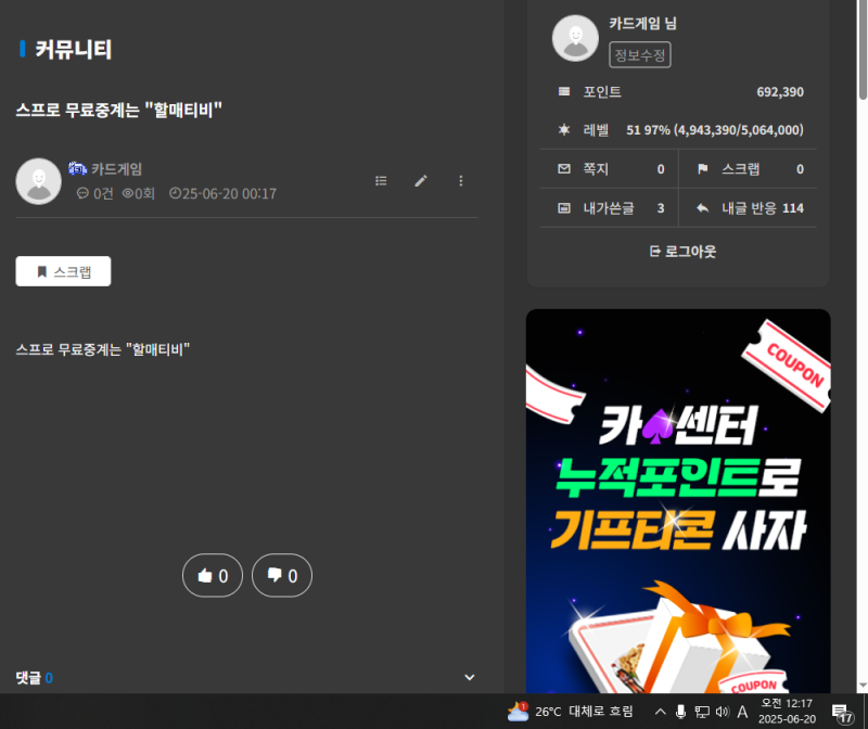 홍보왕 카드게임 6/20 작성자 정보 카드게임쪽지보내기 자기소개 닉네임으로 검색쪽지보내기 자기소개 닉네임으로 검색 작성 작성일 2025.06.20 00:18 컨텐츠 정보 55 조회 6 댓글 0 추천 목록 본문 할티망함 0 추천 관련자료 이전 메인벳이 있는쪽이 정통성이 있다고 보긴하는데 작성일 2025.06.20 00:24 다음 ㅁㅊ 동시저지 작성일 2025.06.20 00:12 댓글 6 기커조님의 댓글 기커조쪽지보내기 자기소개 닉네임으로 검색쪽지보내기 자기소개 닉네임으로 검색 작성일 2025.06.20 08:20 홍보 ㅅ 홍보 ㅅ 켄트퍼플님의 댓글 켄트퍼플쪽지보내기 자기소개 닉네임으로 검색쪽지보내기 자기소개 닉네임으로 검색 작성일 2025.06.20 08:49 덜덜 덜덜 참이슬님의 댓글 참이슬쪽지보내기 자기소개 닉네임으로 검색쪽지보내기 자기소개 닉네임으로 검색 작성일 2025.06.20 09:36 좋네요 좋네요 달먹님의 댓글 달먹쪽지보내기 자기소개 닉네임으로 검색쪽지보내기 자기소개 닉네임으로 검색 작성일 2025.06.20 11:09 카겜 카겜 스테판커쇼님의 댓글 스테판커쇼쪽지보내기 자기소개 닉네임으로 검색쪽지보내기 자기소개 닉네임으로 검색 작성일 2025.06.20 12:39 화이팅 화이팅 먼짝귀1111님의 댓글 먼짝귀1111쪽지보내기 자기소개 닉네임으로 검색쪽지보내기 자기소개 닉네임으로 검색 작성일 2025.06.20 21:34 굿ㅅ 굿ㅅ 로그인한 회원만 댓글 등록이 가능합니다. 목록