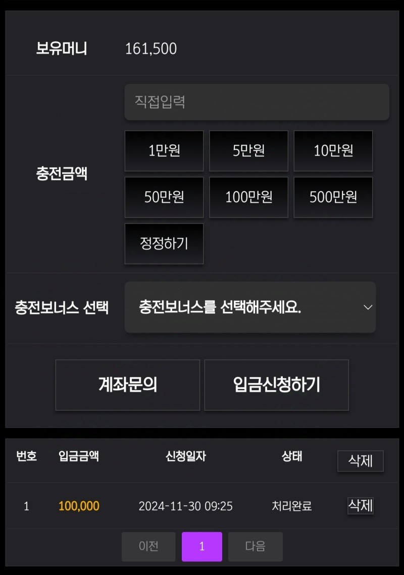 신규가입 이벤트로 10만원 충전해서 5만포인트 지급받고 풍족하게 배팅할 수 있었습니다.