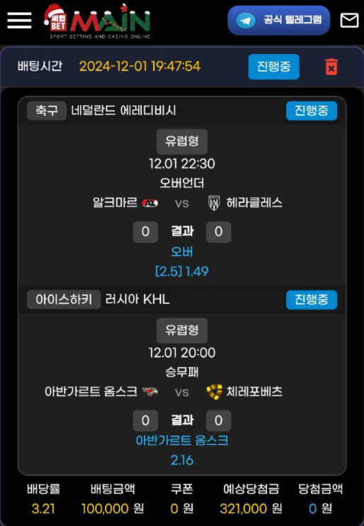 메인뱃) 러시아 하키 후기. 작성자 정보 김배틀쪽지보내기 자기소개 닉네임으로 검색쪽지보내기 자기소개 닉네임으로 검색 작성 작성일 2024.12.01 22:15 컨텐츠 정보 312 조회 2 댓글 0 추천 목록 관리 글검색 본문 요즘 러시아 - 우크라이나 전쟁으로 역배가 다소 많이 출몰하오니 배터분들의 주의가 필요합니다. 하 .. 저도 개같이 낙이네요. 0 추천 관련자료 이전 새벽축구 후기 작성일 2024.12.02 08:25 다음 BET!) 배당 사기꾼들. 작성일 2024.12.01 18:16 댓글 2 기커조님의 댓글 기커조쪽지보내기 자기소개 닉네임으로 검색쪽지보내기 자기소개 닉네임으로 검색 작성일 2024.12.01 23:33 건승하세요 건승하세요 마당발님의 댓글 마당발쪽지보내기 자기소개 닉네임으로 검색쪽지보내기 자기소개 닉네임으로 검색 작성일 2024.12.02 00:03 아쉽습니다 아쉽습니다 로그인한 회원만 댓글 등록이 가능합니다. 목록 관리 글검색