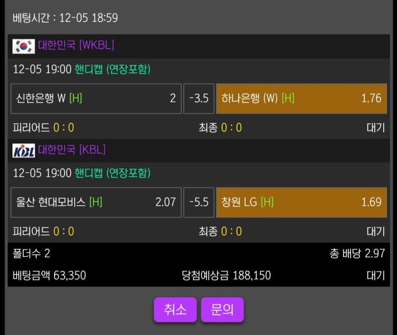 배당은 적더라도 플핸 높은것으로 베팅하였으나