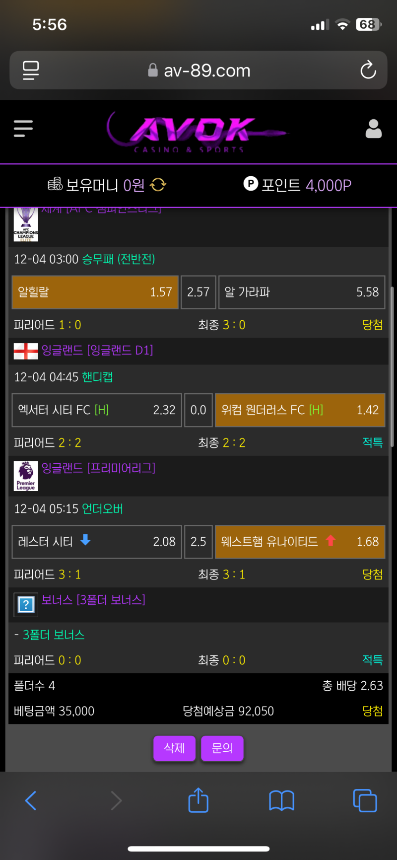 아보크벳 리그전 적중후기입니다
