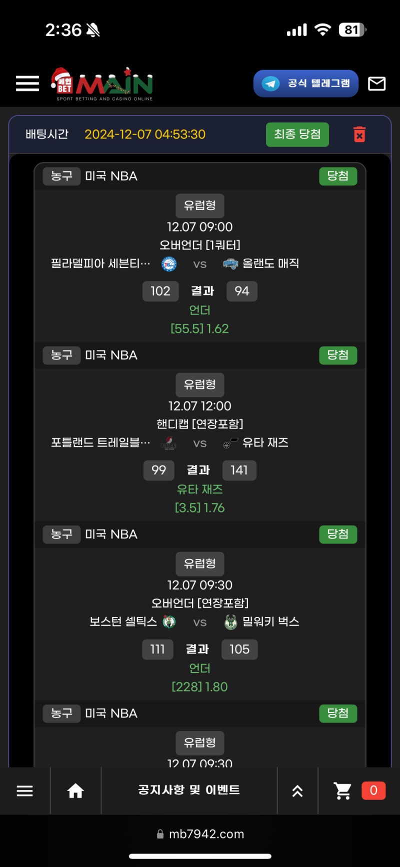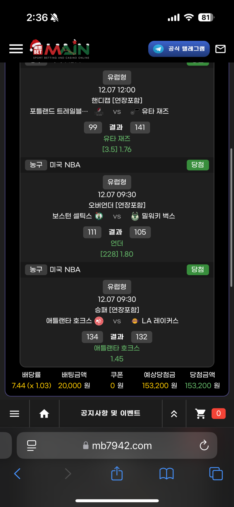 메인벳 > 스포츠후기 작성자 정보 느바학개론쪽지보내기 자기소개 닉네임으로 검색쪽지보내기 자기소개 닉네임으로 검색 작성 작성일 2024.12.07 14:38 컨텐츠 정보 229 조회 2 댓글 0 추천 목록 관리 글검색 본문 주말 시크릿쿠폰 너무좋아요 쿠폰벳은 낙이지만 느바라도 성공해서 다행이네요 0 추천 관련자료 이전 풀빠다 > 스포츠후기 작성일 2024.12.07 18:25 다음 벳아이 > 느바후기 작성일 2024.12.06 14:33 댓글 2 기커조님의 댓글 기커조쪽지보내기 자기소개 닉네임으로 검색쪽지보내기 자기소개 닉네임으로 검색 작성일 2024.12.07 15:52 당첨축하합니다 당첨축하합니다 토태님의 댓글 토태쪽지보내기 자기소개 닉네임으로 검색쪽지보내기 자기소개 닉네임으로 검색 작성일 2025.01.31 23:58 축하드려요 축하드려요 로그인한 회원만 댓글 등록이 가능합니다. 목록 관리 글검색