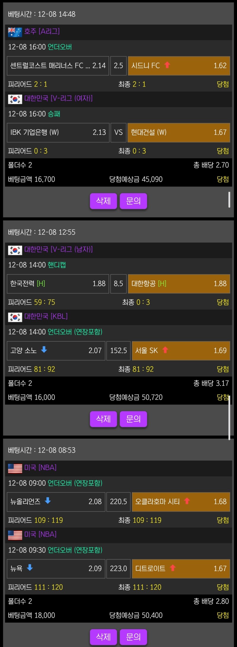 오늘 10번 배팅한거 같은데 당첨 내역만 올렸구요
