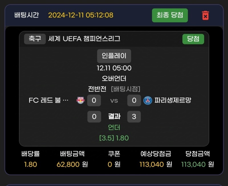경기시작했는데 파리가 또 슈팅만 오지게 차고 골이 없길래 이때까지 그래왔던것처럼 1골 겨우 넣을것 같길래 3.5언더 배팅