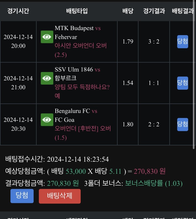 헝가리 부다페스트 전반 1-1 해주고 무난히오바성공 인도 리그는 전반 고아1-0리드하다