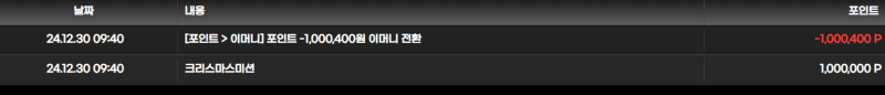 드디어 성공했네요.. 운 좋게 언더 3폴 적중해서 100만 포인트 받고 롤링 쳐서 환전했습니다! 출석 이벤트, 12월 첫충 + 매충 10%, 페이백 이벤트 등등 많은 이벤트 하고 있으니까 함 이용해보시면 좋을거 같습니다! 참고로 충환도 빠른편입니다