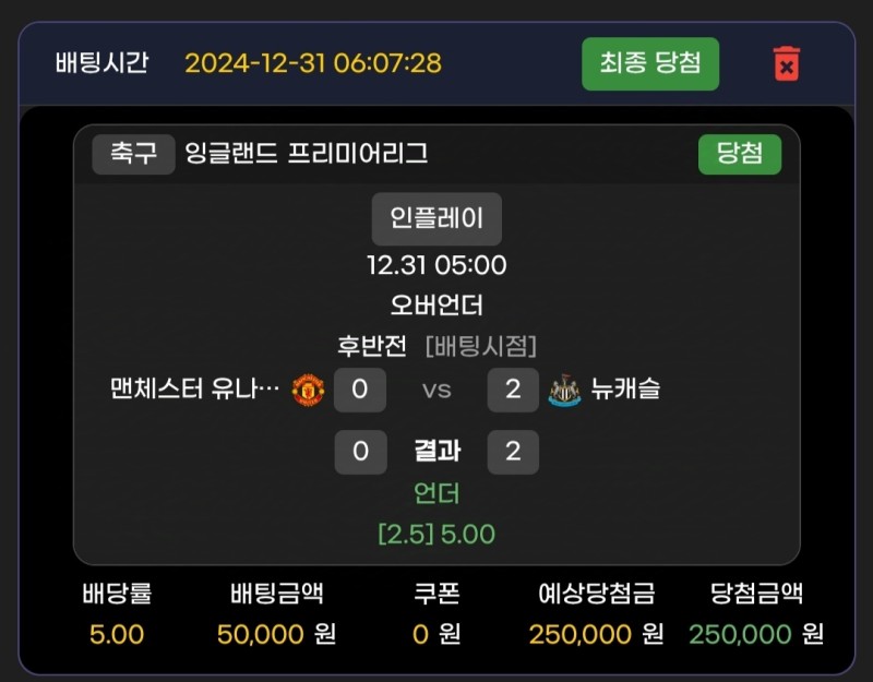메인벳 맨유vs뉴캐슬 후기 작성자 정보 마당발쪽지보내기 자기소개 닉네임으로 검색쪽지보내기 자기소개 닉네임으로 검색 작성 작성일 2024.12.31 23:48 컨텐츠 정보 666 조회 2 댓글 0 추천 목록 관리 글검색 본문 요즘 계속 지는중인 맨유와 연승중인 풀전력의 뉴캐슬 뉴캐슬 승 가려다가 맨유가 또 역귀짓할까봐 실시간 2.5언더 배팅 적중 전두언은 언제봐도 짜릿한듯 0 추천 관련자료 이전 레드불 후기 작성일 2024.12.31 23:51 다음 쇼미더벳 올랜도vs브루클린 후기 작성일 2024.12.30 17:52 댓글 2 기커조님의 댓글 기커조쪽지보내기 자기소개 닉네임으로 검색쪽지보내기 자기소개 닉네임으로 검색 작성일 2025.01.01 22:43 당첨축하요 당첨축하요 토태님의 댓글 토태쪽지보내기 자기소개 닉네임으로 검색쪽지보내기 자기소개 닉네임으로 검색 작성일 2025.01.31 22:49 축하여 축하여 로그인한 회원만 댓글 등록이 가능합니다. 목록 관리 글검색