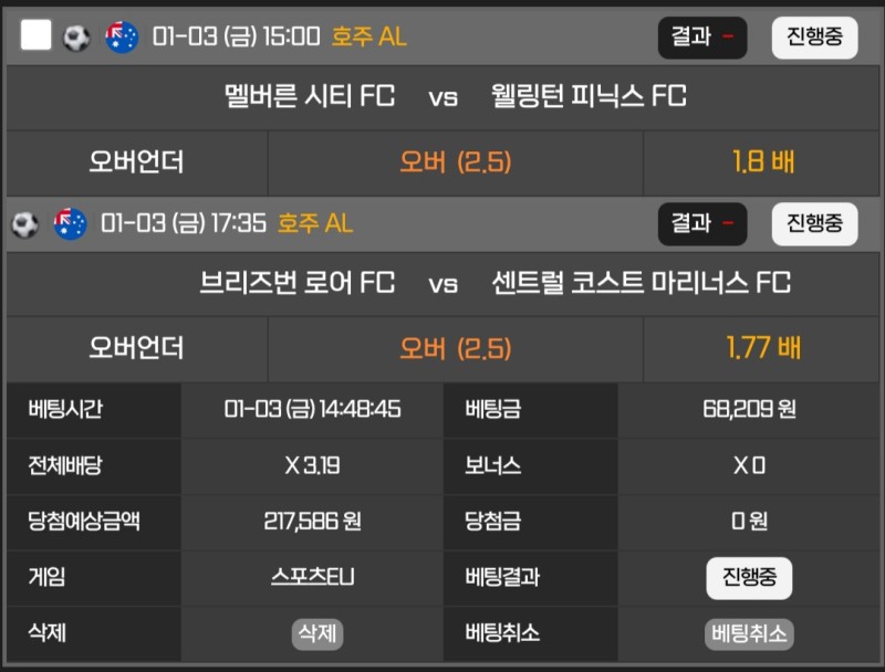 오버 베팅 입장에서는 굉장히 스트레스 받는경기