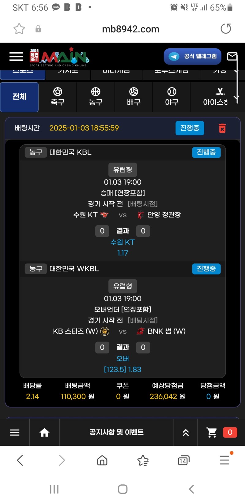 같아 포기 메인벳은 2.1배 롤링이라 국농보니 스크