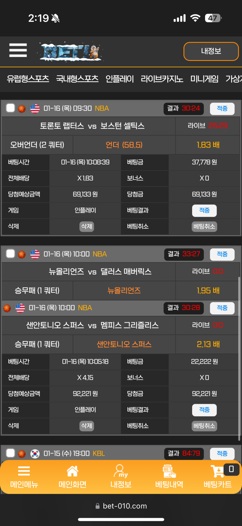 벳아이 ) 실시간후기 작성자 정보 느바학개론쪽지보내기 자기소개 닉네임으로 검색쪽지보내기 자기소개 닉네임으로 검색 작성 작성일 2025.01.16 14:21 컨텐츠 정보 807 조회 2 댓글 0 추천 목록 관리 글검색 본문 저는 개인적으로 실기간은 벳아이인듯 추천드립니다 0 추천 관련자료 이전 벳아이 ) 실시간후기 작성일 2025.01.17 21:01 다음 메인벳 ) 스포츠 미당첨후기 작성일 2025.01.16 14:17 댓글 2 기커조님의 댓글 기커조쪽지보내기 자기소개 닉네임으로 검색쪽지보내기 자기소개 닉네임으로 검색 작성일 2025.01.16 17:28 적중축하요 적중축하요 토태님의 댓글 토태쪽지보내기 자기소개 닉네임으로 검색쪽지보내기 자기소개 닉네임으로 검색 작성일 2025.01.31 22:12 축하드려요 축하드려요 로그인한 회원만 댓글 등록이 가능합니다. 목록 관리 글검색