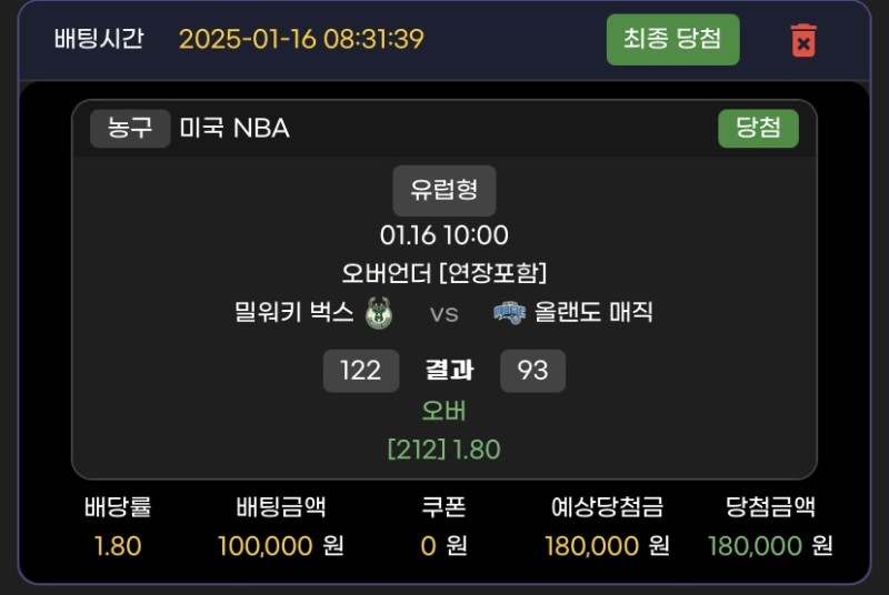 메인벳 후기 작성자 정보 안걸림쪽지보내기 자기소개 닉네임으로 검색쪽지보내기 자기소개 닉네임으로 검색 작성 작성일 2025.01.16 23:17 컨텐츠 정보 809 조회 2 댓글 0 추천 목록 관리 글검색 본문 간만에 nba 올킬 0 추천 관련자료 이전 메인벳 후기 작성일 2025.01.20 21:12 다음 메인벳 후기 작성일 2025.01.07 21:47 댓글 2 기커조님의 댓글 기커조쪽지보내기 자기소개 닉네임으로 검색쪽지보내기 자기소개 닉네임으로 검색 작성일 2025.01.17 00:04 당첨축하요 당첨축하요 토태님의 댓글 토태쪽지보내기 자기소개 닉네임으로 검색쪽지보내기 자기소개 닉네임으로 검색 작성일 2025.01.31 22:07 축하드려요 축하드려요 로그인한 회원만 댓글 등록이 가능합니다. 목록 관리 글검색
