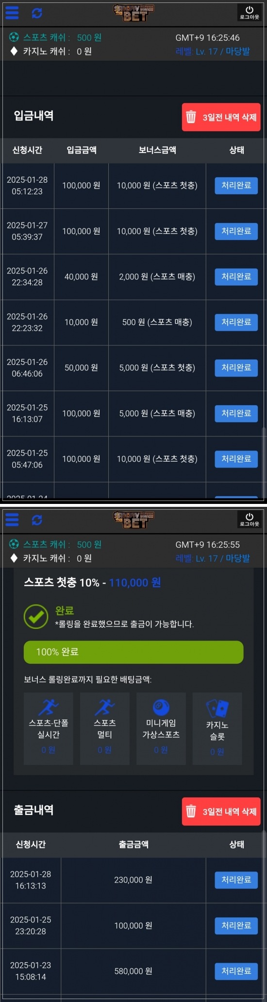 출금할때 롤링이 얼마나 남았는지 알려주는 편리함