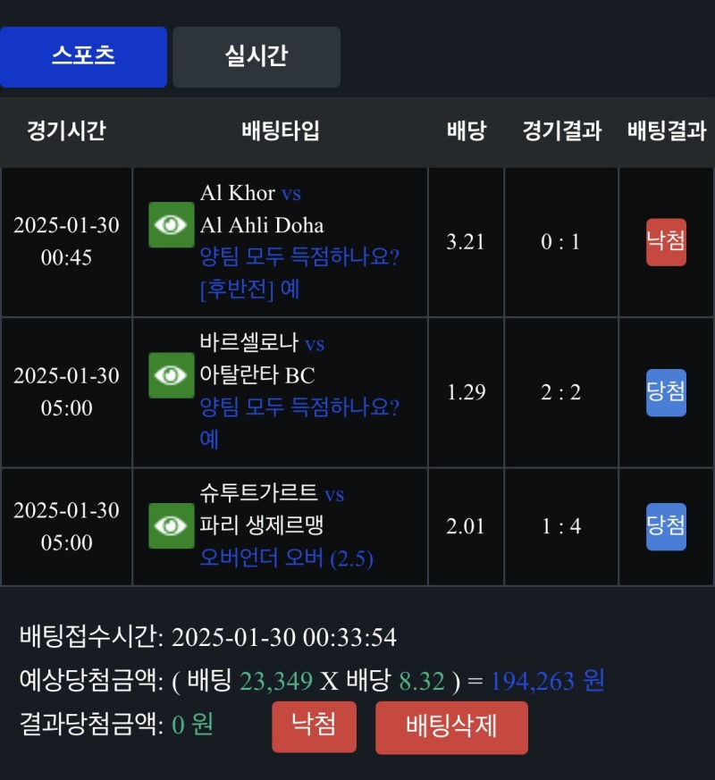 리그전경기는 적중하고