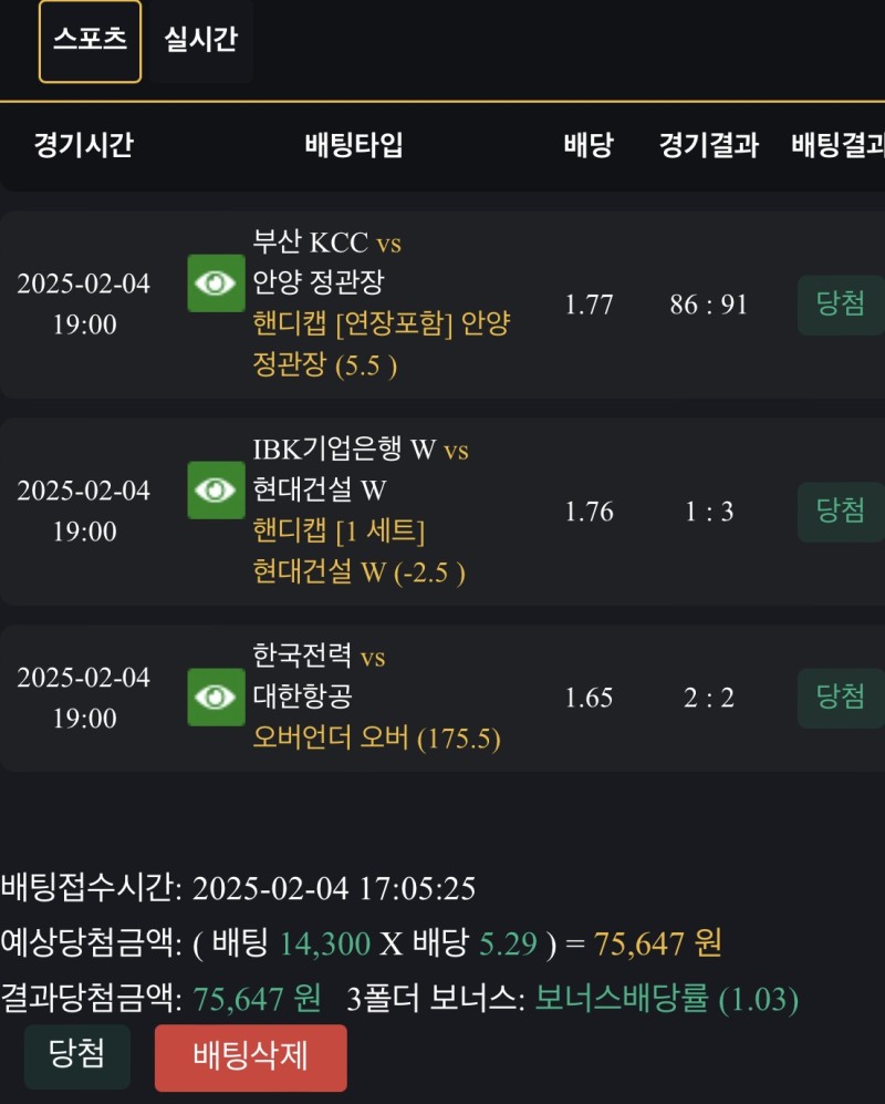 돌직구 적중 작성자 정보 호르직스쪽지보내기 자기소개 닉네임으로 검색쪽지보내기 자기소개 닉네임으로 검색 작성 작성일 2025.02.04 22:05 컨텐츠 정보 919 조회 2 댓글 0 추천 목록 관리 글검색 본문 연패를 할포로 끊었네요 전부다 푸근하게 들어왔네요 0 추천 관련자료 이전 돌직구 실시간 낙 작성일 2025.02.04 22:06 다음 돌직구 연패의늪 낙 작성일 2025.02.03 09:16 댓글 2 기커조님의 댓글 기커조쪽지보내기 자기소개 닉네임으로 검색쪽지보내기 자기소개 닉네임으로 검색 작성일 2025.02.04 22:06 축하드립니다 축하드립니다 인생은도박이다님의 댓글 인생은도박이다쪽지보내기 자기소개 닉네임으로 검색쪽지보내기 자기소개 닉네임으로 검색 작성일 2025.02.05 09:35 나이따 나이따 로그인한 회원만 댓글 등록이 가능합니다. 목록 관리 글검색