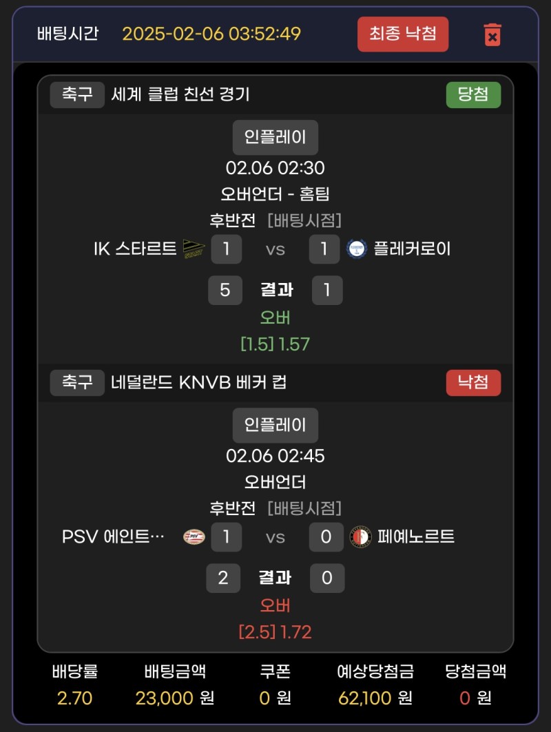 메인벳 후기 작성자 정보 낭만권위자야쪽지보내기 자기소개 닉네임으로 검색쪽지보내기 자기소개 닉네임으로 검색 작성 작성일 2025.02.09 21:15 컨텐츠 정보 930 조회 1 댓글 0 추천 목록 본문 실시간경기 후기 ㅜㅜ 호번 기준 3.5에 전반 1-0종료끝나고 후반 두골이상 나온다생각하고 투척 ㅜㅜ 아쉽게도 호번 2-0 경종이네요 ㅜㅜ 0 추천 관련자료 이전 메인벳 후기 작성일 2025.02.09 22:05 다음 쇼미더벳 후기 작성일 2025.02.09 20:04 댓글 1 기커조님의 댓글 기커조쪽지보내기 자기소개 닉네임으로 검색쪽지보내기 자기소개 닉네임으로 검색 작성일 2025.02.09 22:24 까비요 까비요 로그인한 회원만 댓글 등록이 가능합니다. 목록