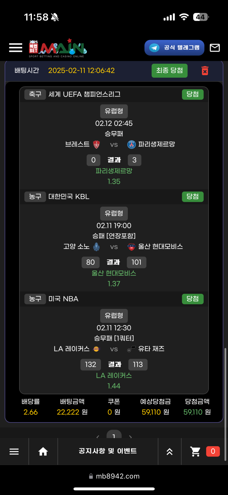 메인벳 ) 선픽 스포츠후기 작성자 정보 느바학개론쪽지보내기 자기소개 닉네임으로 검색쪽지보내기 자기소개 닉네임으로 검색 작성 작성일 2025.02.12 11:59 컨텐츠 정보 943 조회 1 댓글 0 추천 목록 관리 글검색 본문 필라 ㅋㅋㅋㅋㅋ 2승 마무리 아쉽네요 0 추천 관련자료 이전 베팅의신 ) 올낙첨후기 작성일 2025.02.12 12:01 다음 베팅의신 ) 골스후기 작성일 2025.02.11 13:18 댓글 1 기커조님의 댓글 기커조쪽지보내기 자기소개 닉네임으로 검색쪽지보내기 자기소개 닉네임으로 검색 작성일 2025.02.12 13:28 화이팅입니다 화이팅입니다 로그인한 회원만 댓글 등록이 가능합니다. 목록 관리 글검색