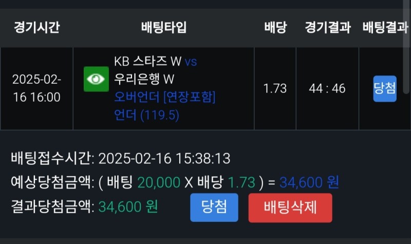 쇼미더벳 KB스타즈vs우리은행 후기 작성자 정보 마당발쪽지보내기 자기소개 닉네임으로 검색쪽지보내기 자기소개 닉네임으로 검색 작성 작성일 2025.02.16 18:41 컨텐츠 정보 852 조회 1 댓글 0 추천 목록 관리 글검색 본문 kb는 4위를 위해 우리은행은 우승을 위해 전력을 다 할 경기 우리은행의 수비가 좋고 청주체육관에서는 kb가 수비할때 콜이 잘 안불려서 언더 배팅 땀냄새나는 농구하며 저득점 0 추천 관련자료 이전 레드불 ok금융vs한국전력 후기 작성일 2025.02.16 18:42 다음 쇼미더벳 농심vs디플러스기아 후기 작성일 2025.02.15 21:35 댓글 1 기커조님의 댓글 기커조쪽지보내기 자기소개 닉네임으로 검색쪽지보내기 자기소개 닉네임으로 검색 작성일 2025.02.16 19:41 당첨축하요 당첨축하요 로그인한 회원만 댓글 등록이 가능합니다. 목록 관리 글검색