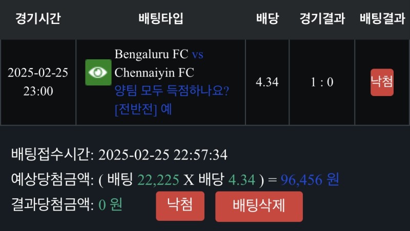 쇼미더벳) 후기 작성자 정보 낭만권위자야쪽지보내기 자기소개 닉네임으로 검색쪽지보내기 자기소개 닉네임으로 검색 작성 작성일 2025.02.26 14:56 컨텐츠 정보 878 조회 2 댓글 0 추천 목록 본문 인도리그 벵갈루루 전반승 가려다 배당이 너무크길래 ㅜㅜ 차라리 둘다 득점할거같아서.. 결과는 전반 뱅갈 1-0 승 ㅜㅜ 아쉽다 그냥 생각한대로 갈걸 욕심부렸네요 ㅜㅜ 0 추천 관련자료 이전 풀빠따)스포츠 후기 작성일 2025.02.26 15:05 다음 메인벳 ) 스포츠후기 작성일 2025.02.26 14:31 댓글 2 기커조님의 댓글 기커조쪽지보내기 자기소개 닉네임으로 검색쪽지보내기 자기소개 닉네임으로 검색 작성일 2025.02.26 17:26 까비요 까비요 마당발님의 댓글 마당발쪽지보내기 자기소개 닉네임으로 검색쪽지보내기 자기소개 닉네임으로 검색 작성일 2025.02.26 22:13 까비 까비 로그인한 회원만 댓글 등록이 가능합니다. 목록