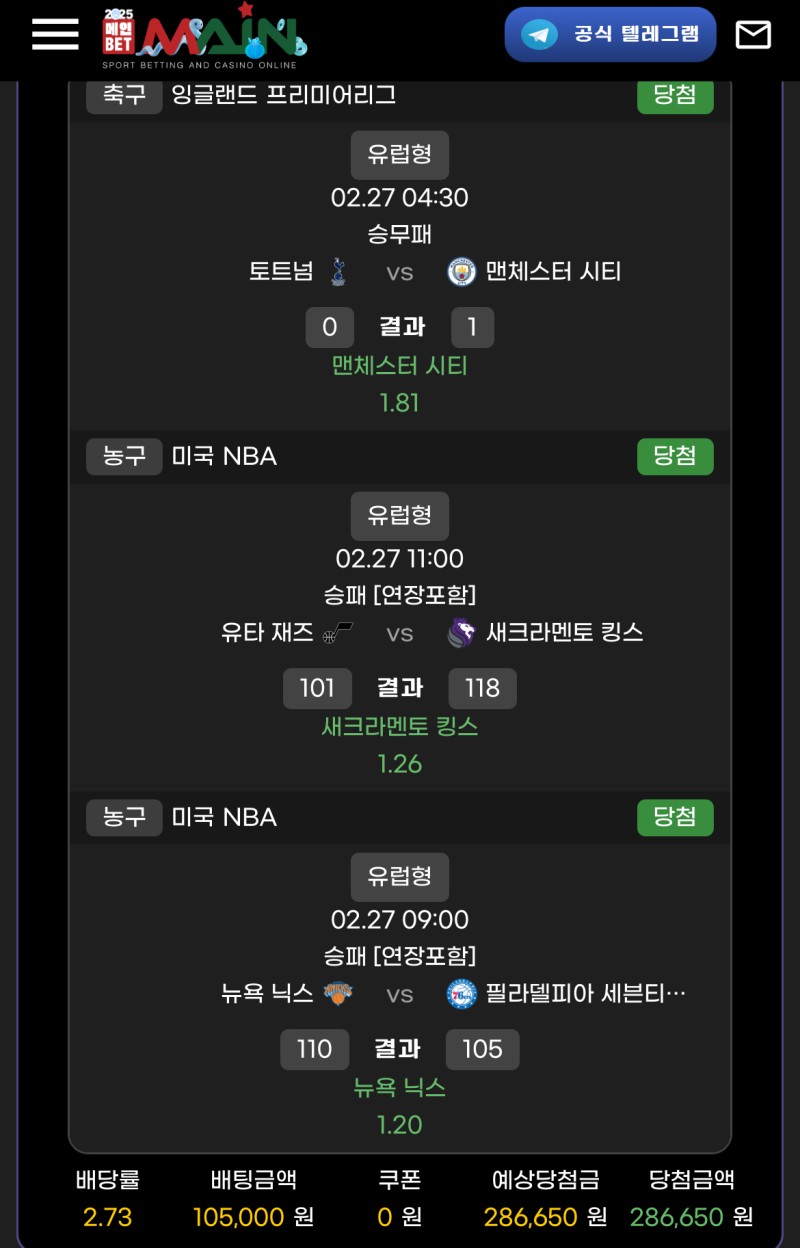 메인벳으로 선픽 4승 성공 후기 작성자 정보 토희재쪽지보내기 자기소개 닉네임으로 검색쪽지보내기 자기소개 닉네임으로 검색 작성 작성일 2025.02.27 13:25 컨텐츠 정보 874 조회 2 댓글 0 추천 목록 관리 글검색 본문 맨시티 갈 마음 없었는데 라인업 보고 바로 물었습니다 배당이 메인벳이 제일 좋았네요 레전드 사건 발생 0 추천 관련자료 이전 레드불 레전드 후기 작성일 2025.03.16 02:17 다음 쇼미 진심 개레전드 후기 작성일 2025.02.04 12:14 댓글 2 기커조님의 댓글 기커조쪽지보내기 자기소개 닉네임으로 검색쪽지보내기 자기소개 닉네임으로 검색 작성일 2025.02.27 13:58 축하합니다 축하합니다 느바학개론님의 댓글 느바학개론쪽지보내기 자기소개 닉네임으로 검색쪽지보내기 자기소개 닉네임으로 검색 작성일 2025.02.27 15:08 우와 축하드립니다~ 우와 축하드립니다~ 로그인한 회원만 댓글 등록이 가능합니다. 목록 관리 글검색